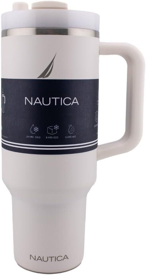 Be the first to review “Nautica 40 oz Large Insulated Tumbler with Handle & Straw with screw on cap, Reusable Water Bottle Stainless Steel Travel Mug for Hot Cold or Iced Drink, BPA-Free, Fits Car Cup Holders (Sage)(Cream)”