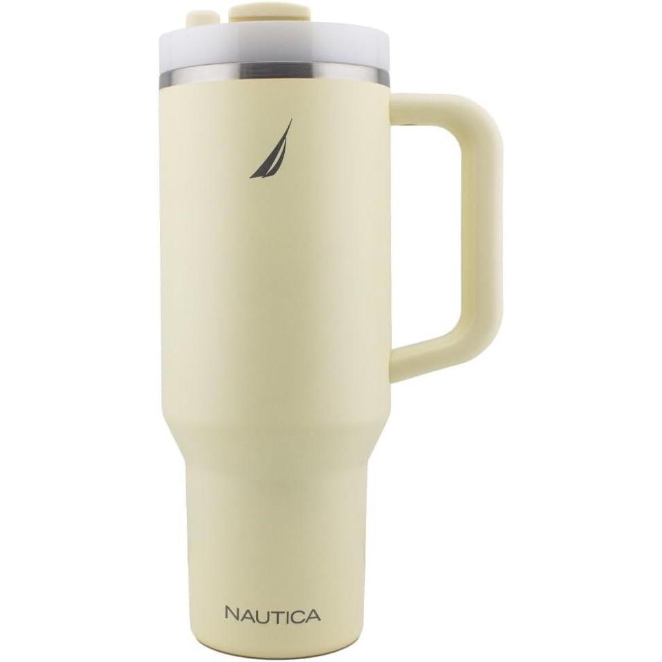 Nautica 40 oz Large Insulated Tumbler with Handle & Straw with screw on cap, Reusable Water Bottle Stainless Steel Travel Mug for Hot Cold or Iced Drink, BPA-Free, Fits Car Cup Holders (Sage)(Light Yellow)