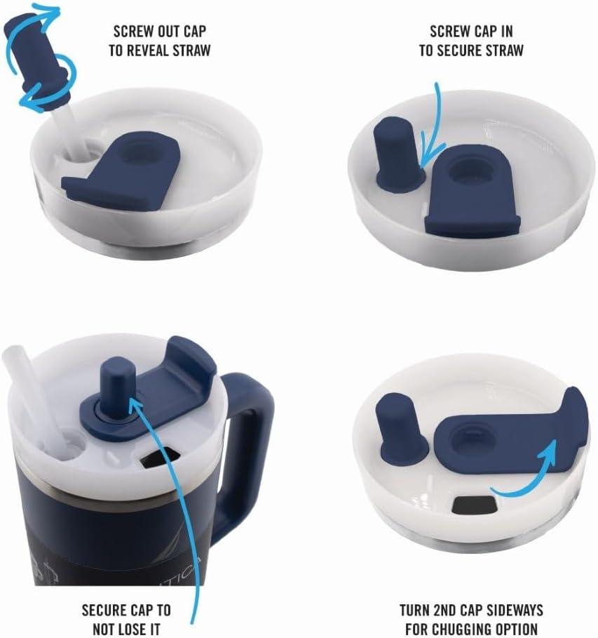 imageNautica 40 oz Large Insulated Tumbler with Handle ampamp Straw with screw on cap Reusable Water Bottle Stainless Steel Travel Mug for Hot Cold or Iced Drink BPAFree Fits Car Cup Holders SageNova Blue