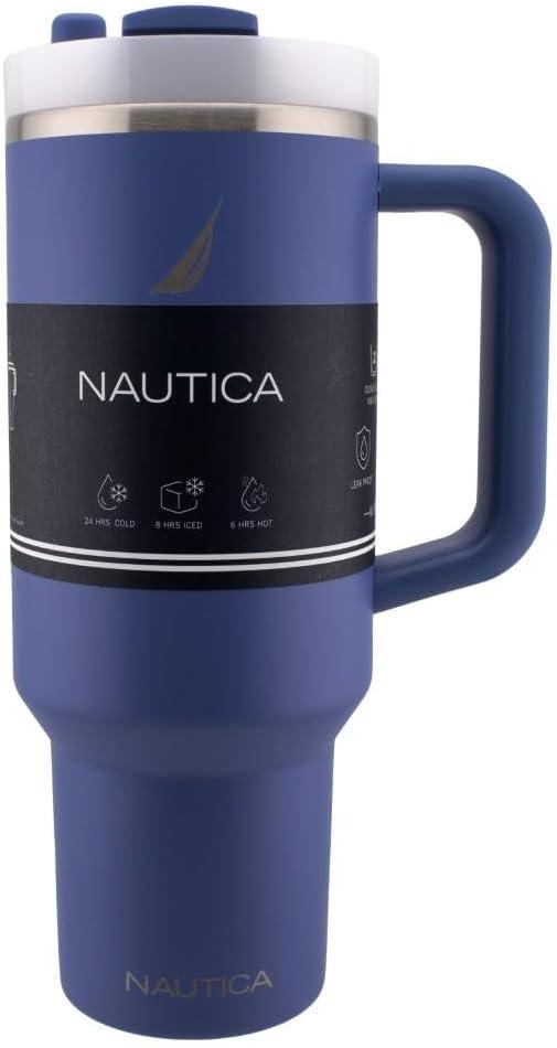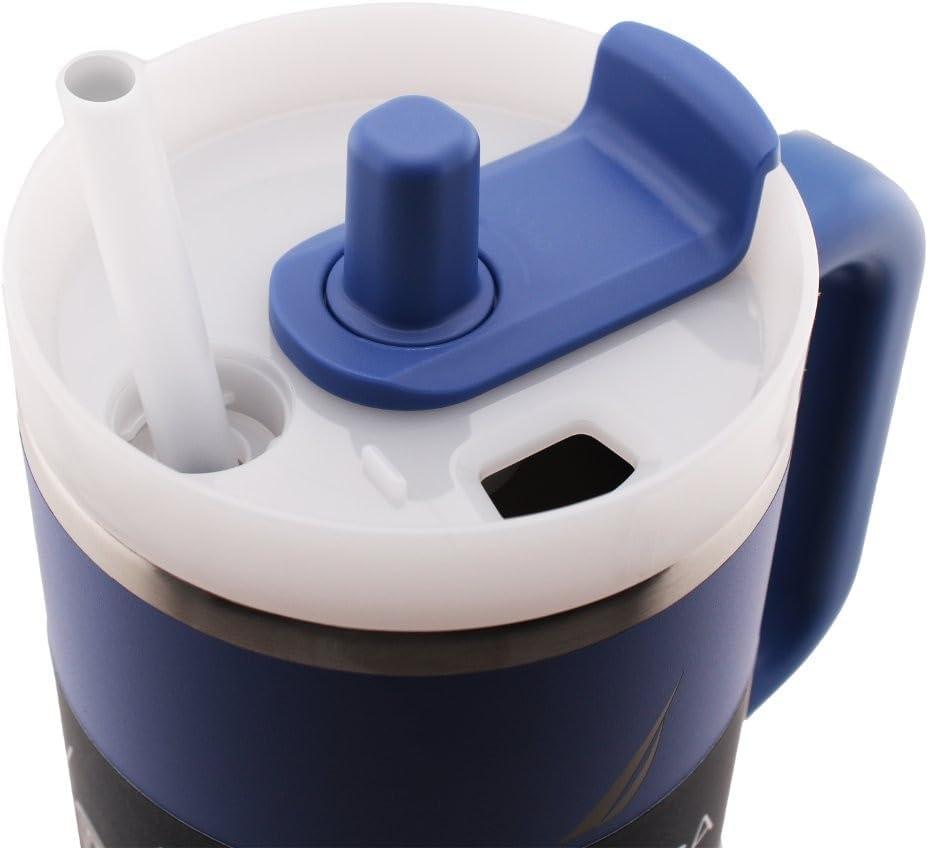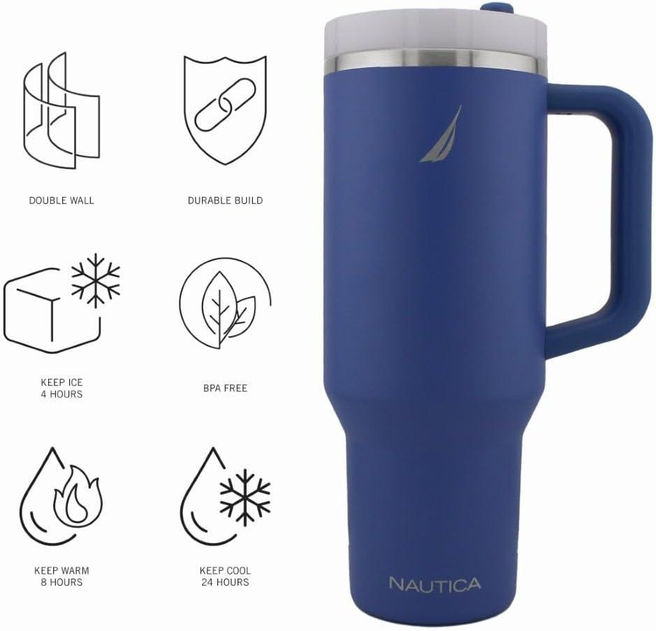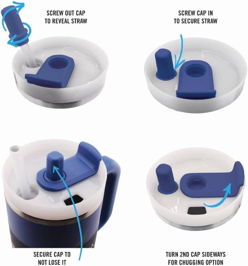 This 40 oz insulated stainless steel tumbler is designed for both style and practicality. It features a durable handle for easy carrying, a reusable straw with a screw-on cap, and a 3-position rotating lid that lets you sip or chug. Its double-wall vacuum insulation keeps drinks hot or cold for hours, making it perfect for long days on the go. The sleek design fits in most car cup holders, and it's crafted from BPA-free materials for safe, everyday use. it’s both functional and fashionable.