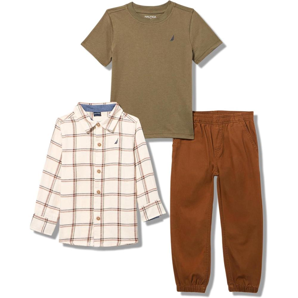 imageNautica Baby Boys 3pc Woven Shirt Pant SetGrape LeafFarina HeatherCrew Brown