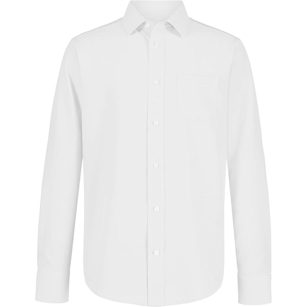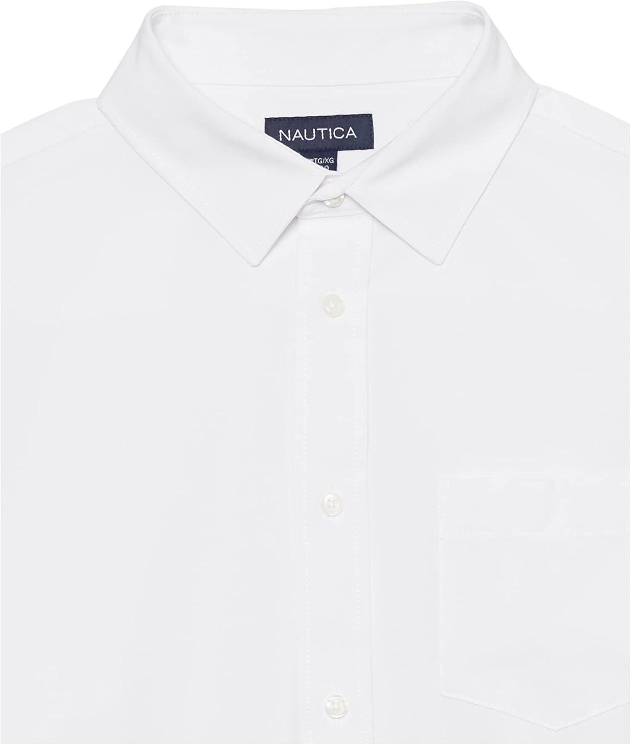 Nautica Big Boys’ School Uniform Long Sleeve Performance Oxford Button-Down Shirt(White)