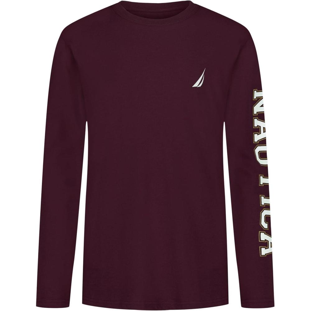 imageNautica Boys Long Sleeve Screen Print Graphic TShirtBold Tawny Port