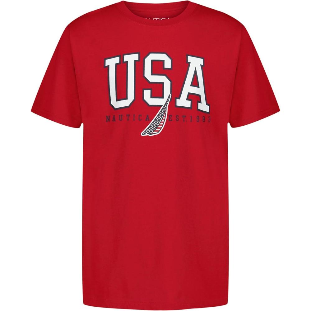 Nautica Boys' Short Sleeve J-Class Logo Crew Neck T-Shirt, Soft, Comfortable, Relaxed Fit(Team Usa Carmine)