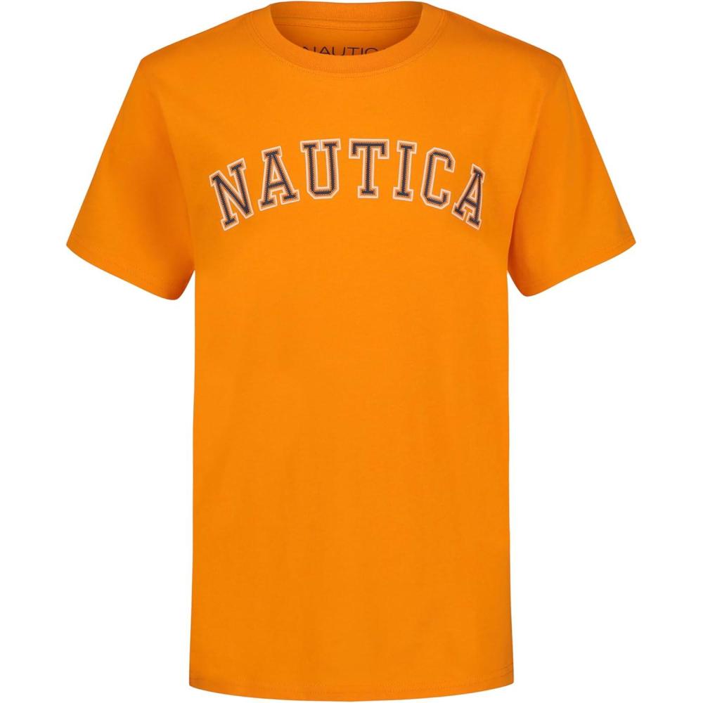 Nautica Boys' Short Sleeve J-Class Logo Crew Neck T-Shirt, Soft, Comfortable, Relaxed Fit(Varsity Arch Persimmon)