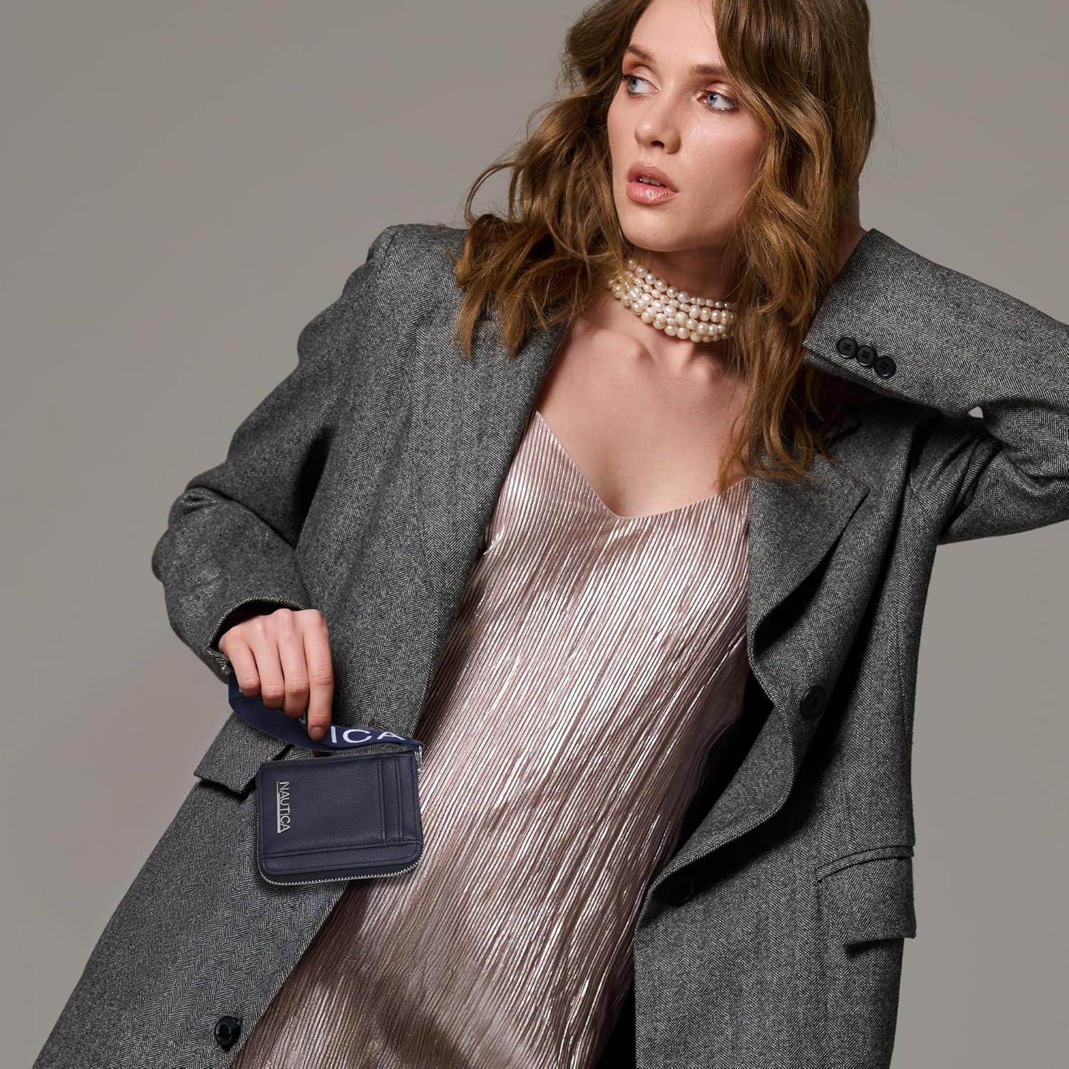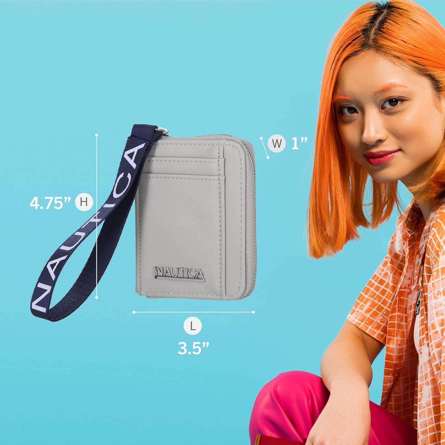 Large Capacity Thin Card Wallet: This female card case wallet includes two exterior card slots holders, one ID window, one large zippered coin compartment, and a wristlet strap. Sized to carry all your essentials in one compact, multifunctional wallet, the Nautica Everglades Card Case provides organization without compromising on style.