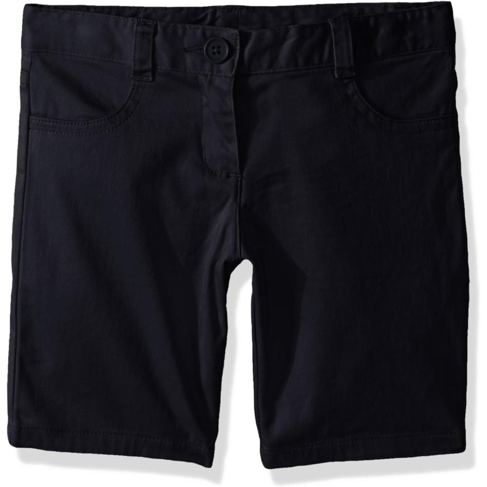 Nautica Girls School Uniform Bermuda Shorts, Pull-on Fit, Stretchy Material, Functional Pockets(Navy/Sateen)