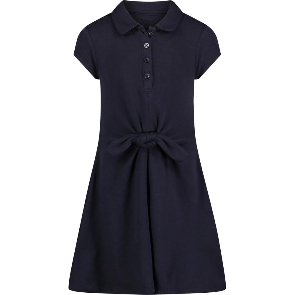 Nautica Girls School Uniform Short Sleeve Polo Dress(Navy Front Tie)