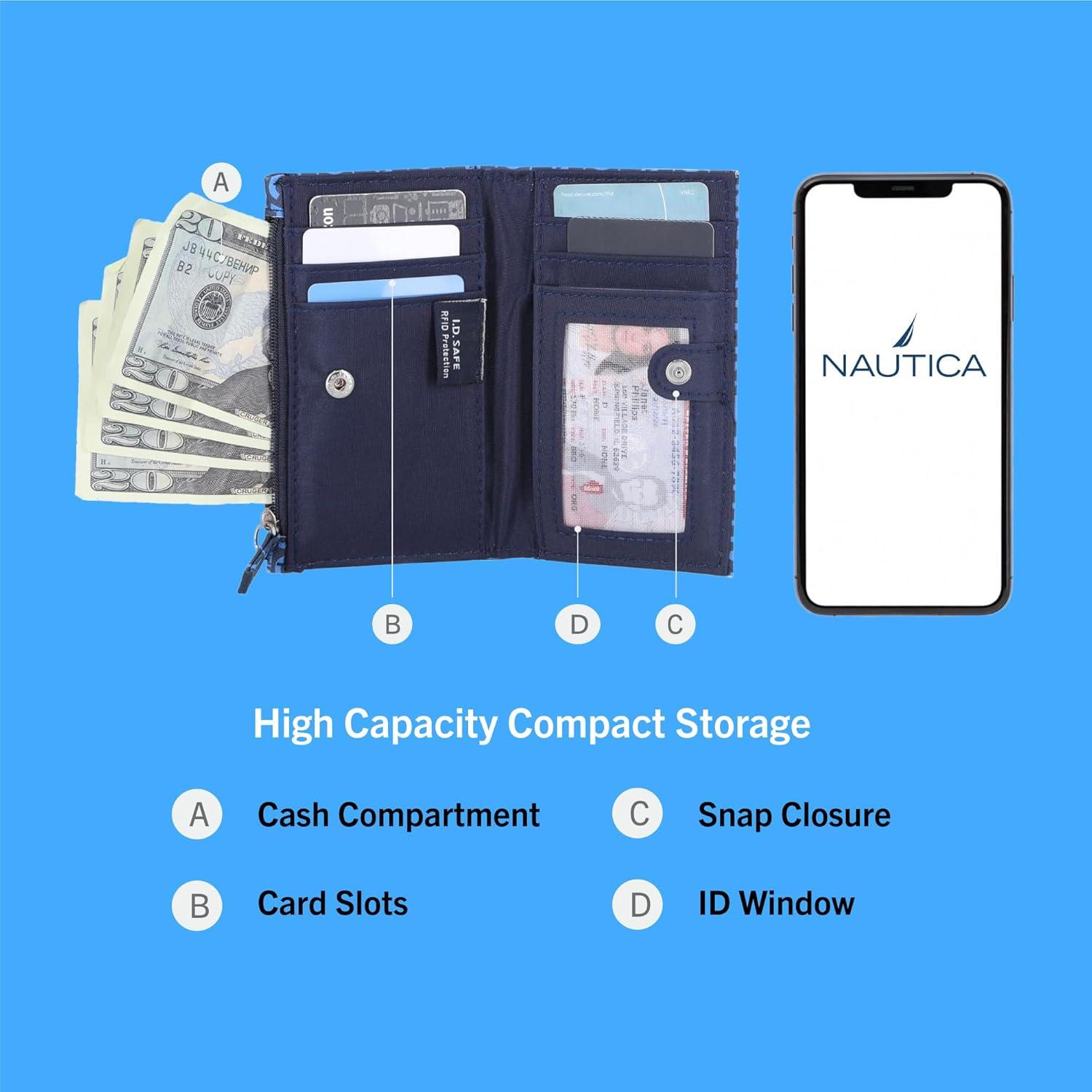 Be the first to review “Nautica High Tide Small Wallet for Women, RFID Blocking Slim Credit Card Holder with Zipper Coin Pocket, Bifold Compact Wallet with ID Window, Black Printed(Americana Logo)”