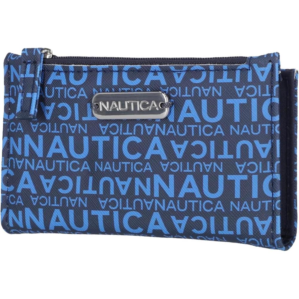 imageNautica High Tide Small Wallet for Women RFID Blocking Slim Credit Card Holder with Zipper Coin Pocket Bifold Compact Wallet with ID Window Black PrintedAmericana Logo