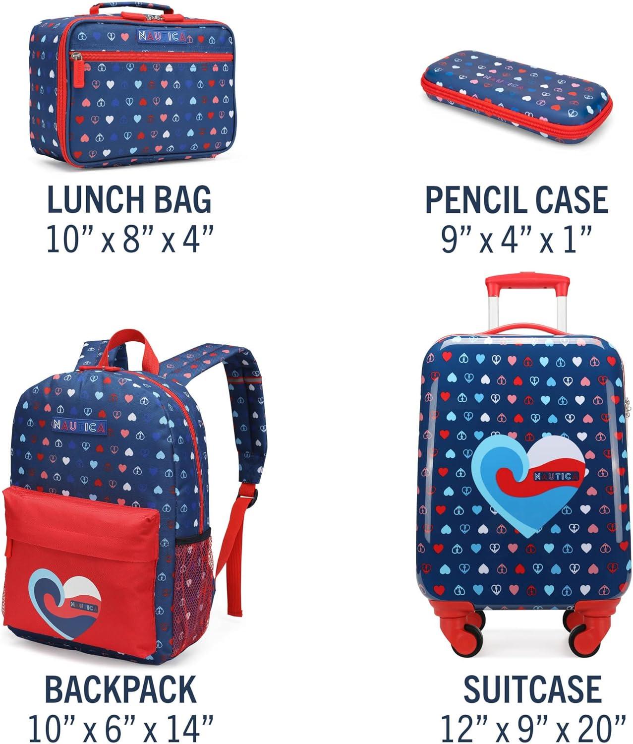 Nautica Kids Luggage – 18″ Airline Approved Rolling Hardside Upright Carry-on Suitcase Set with Wheels (Shark Attack | 5pc Travel Set)(Nautica Peace | 5pc School Set)