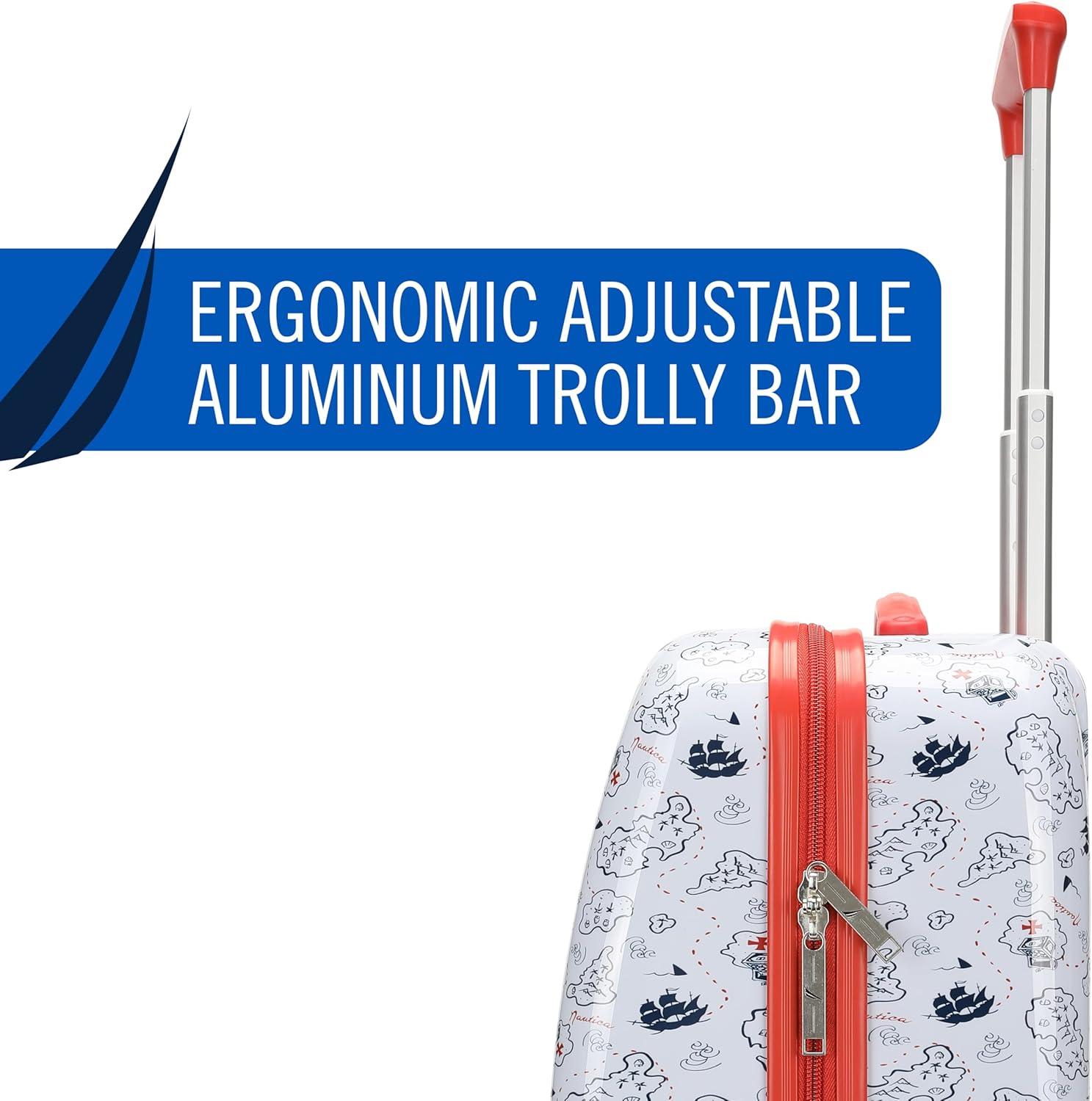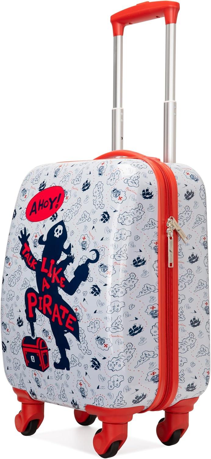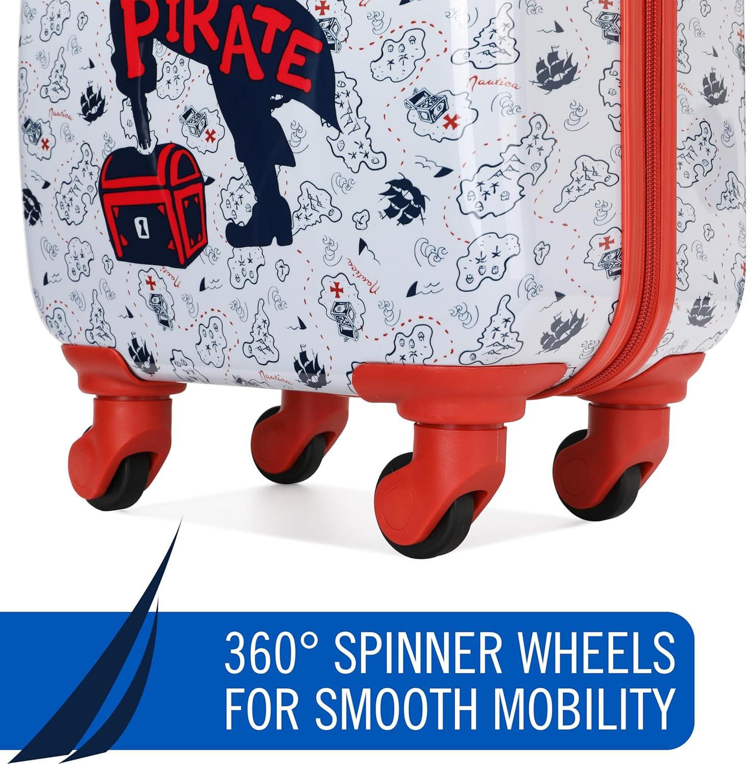 Nautica Kids Luggage – 18″ Airline Approved Rolling Hardside Upright Carry-on Suitcase Set with Wheels (Shark Attack | 5pc Travel Set)(Pirate Ahoy)