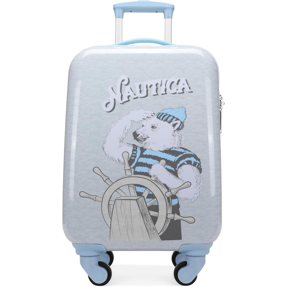 Nautica Kids Luggage – 18″ Airline Approved Rolling Hardside Upright Carry-on Suitcase Set with Wheels (Shark Attack | 5pc Travel Set)(Polar Voyage | 5pc Travel Set)