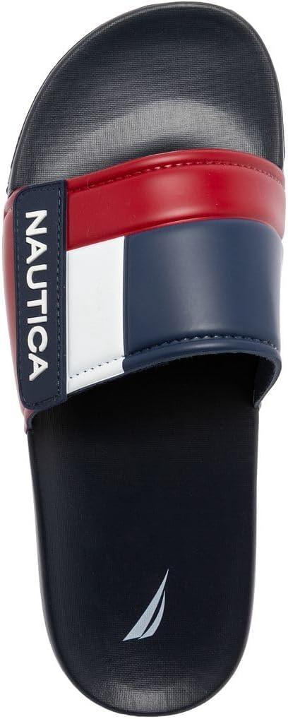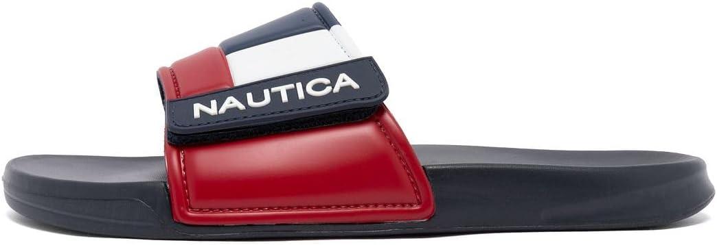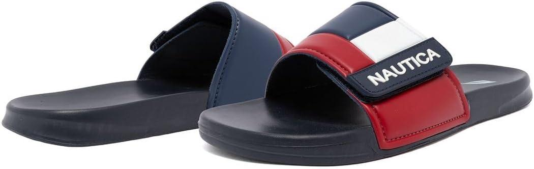 Nautica Men’s Athletic Slide Sandal, Adjustable Straps, Comfort Slip-On(Bower 2-navy/White/Red)