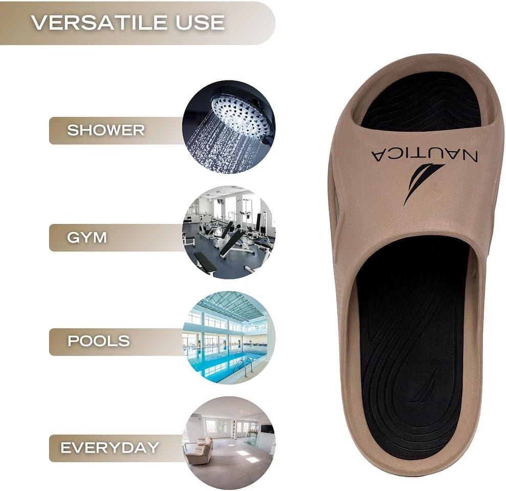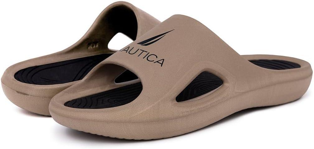 Nautica Men’s Athletic Slides Sport Shower Sandals for Indoor & Outdoor – Lightweight, Durable and Comfortable(Khaki)
