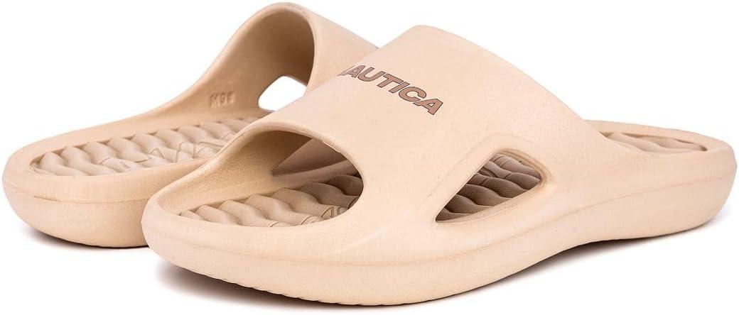 Nautica Men's Athletic Slides Sport Shower Sandals for Indoor & Outdoor - Lightweight, Durable and Comfortable(Khaki)
