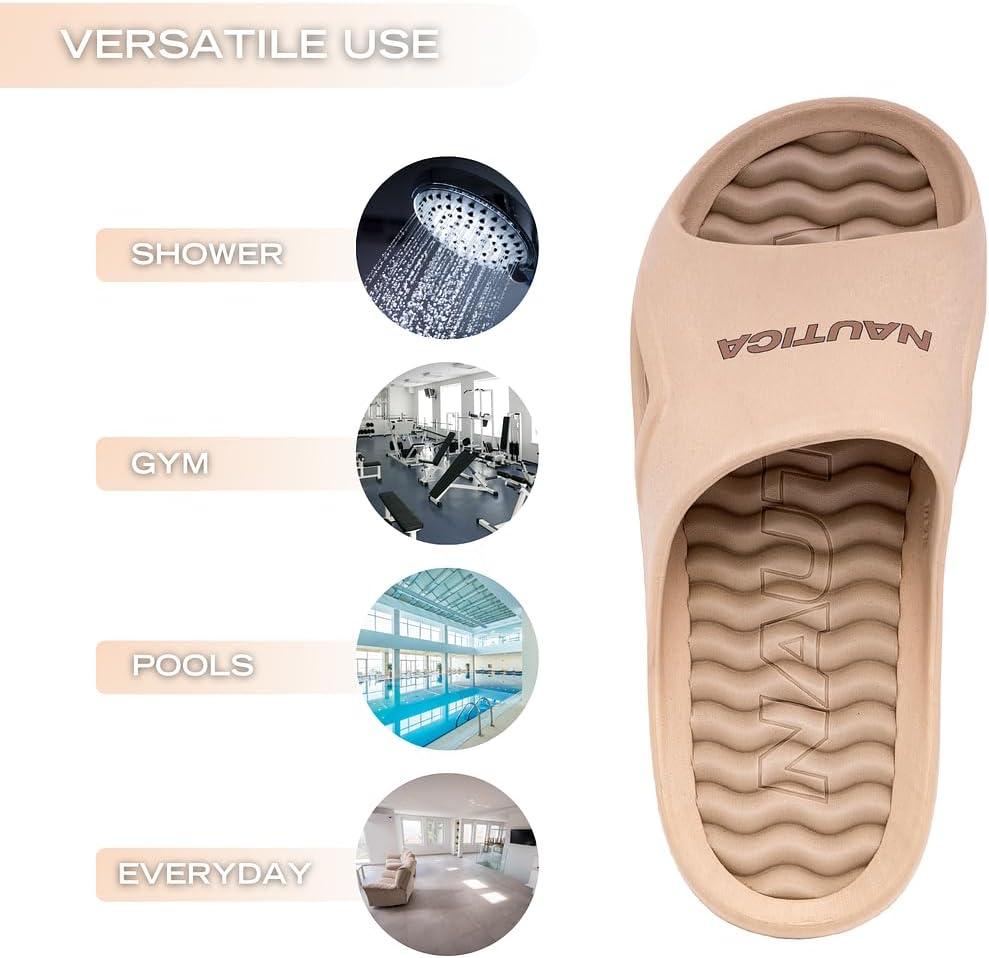 Nautica Men’s Athletic Slides Sport Shower Sandals for Indoor & Outdoor – Lightweight, Durable and Comfortable(Khaki)