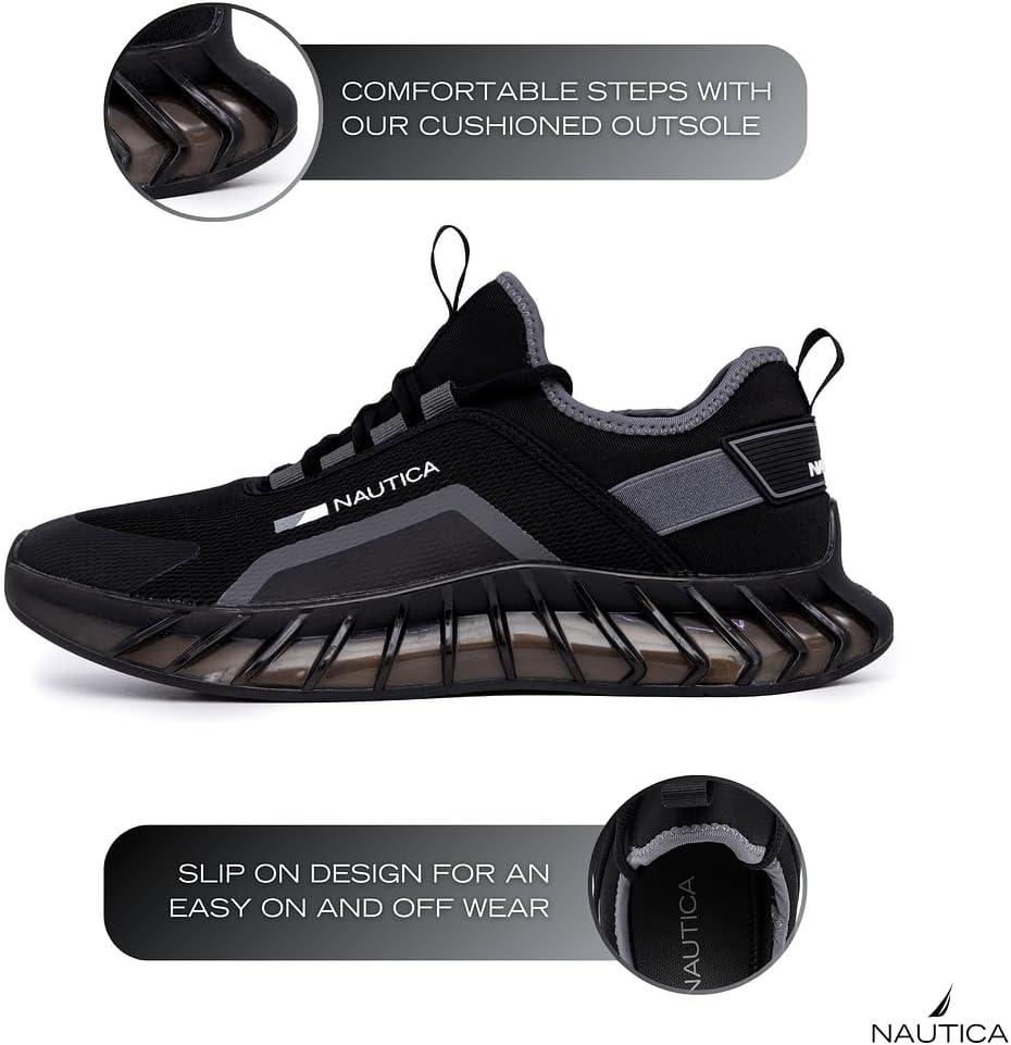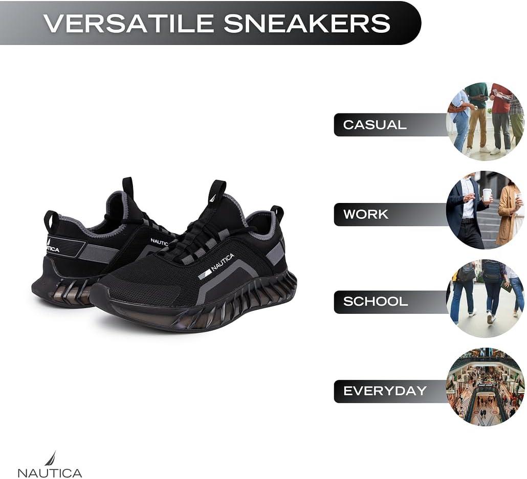 Nautica Men's Athletic Sneakers, Lightweight Running Shoes with Stylish Design and Supportive Sole Experience the perfect blend of performance and style with Nautica Men's Athletic Sneakers, designed for those who demand both comfort and a sleek modern look. Featuring a breathable mesh upper, these lightweight running shoes provide exceptional ventilation to keep your feet cool and dry. The innovative lace-up closure ensures a secure fit, while the padded collar and cushioned insole deliver all-day comfort whether you're hitting the gym, walking around town, or tackling an intense workout. Nautica's signature branding adds a premium touch, making these sneakers the ideal choice for both athletic and casual wear. Built for superior performance, these men’s sneakers feature a durable outsole with a unique lattice structure that provides enhanced flexibility and traction on multiple surfaces. The shock-absorbing midsole helps reduce impact with every step, making them the perfect choice for running, jogging, training, or everyday activities. Designed to support your natural movement, the ergonomic construction offers excellent arch support and stability, ensuring you stay comfortable even during long hours of wear. The stylish low-top design seamlessly blends with jeans, joggers, or workout gear, offering endless versatility for any occasion. Step into the ultimate combination of function and fashion with Nautica’s cutting-edge sports shoes. Whether you're looking for lightweight running shoes, comfortable workout sneakers, or a stylish casual sneaker to elevate your everyday look, this athletic footwear has you covered. The sleek silhouette and high-performance materials make these shoes a must-have for men who value durability, comfort, and trend-forward design. Perfect for athletes, travelers, and trendsetters alike, these sneakers redefine what it means to stay active in style.