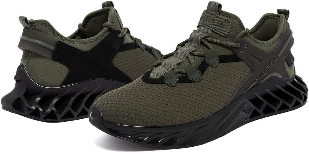 Nautica Men’s Casual Fashion Sneakers – Lightweight Lace-Up Athletic Walking Shoes for Gym & Tennis, Comfortable(Olive Black-wandal)