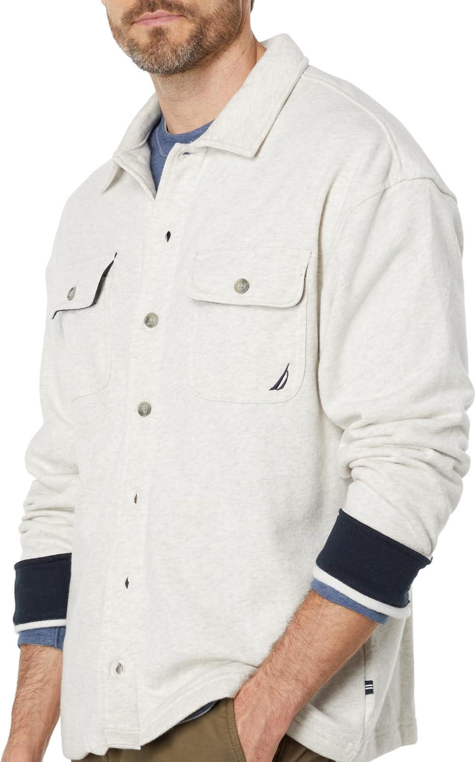 Nautica Men's Fleece Button-up Shirt(Oatmeal Heather)