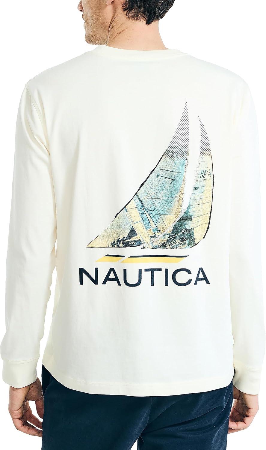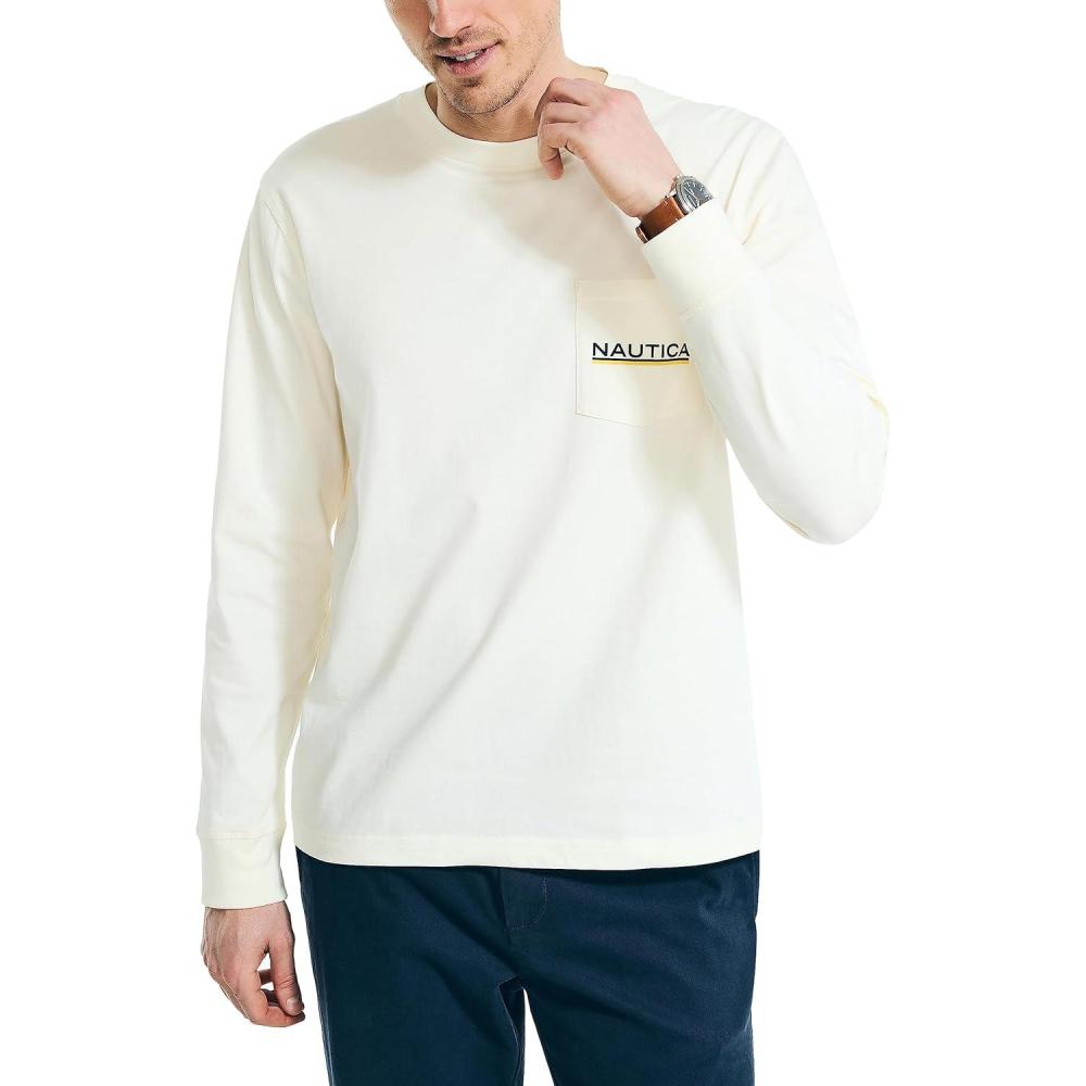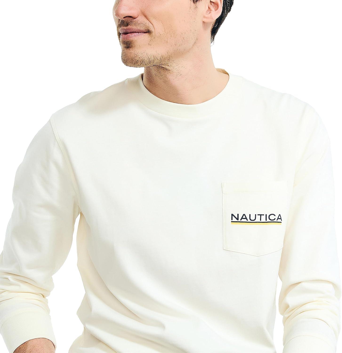Nautica Men’s Long-Sleeve Graphic Pocket T-Shirt(White Cap)