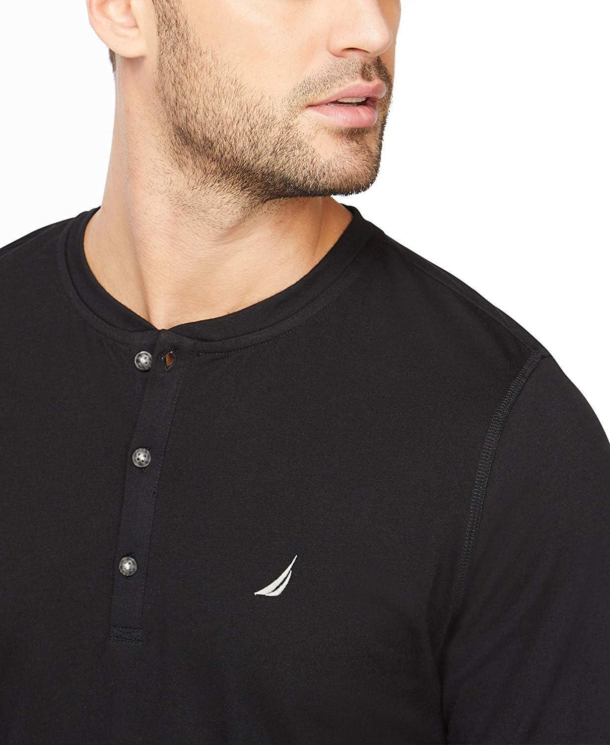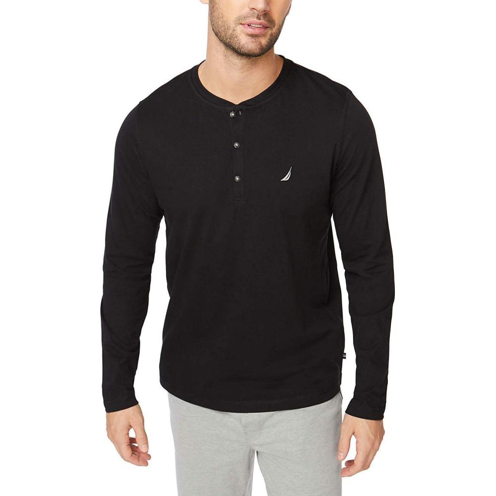 Nautica Men’s Long Sleeve Henley Pajama Top(True Black)