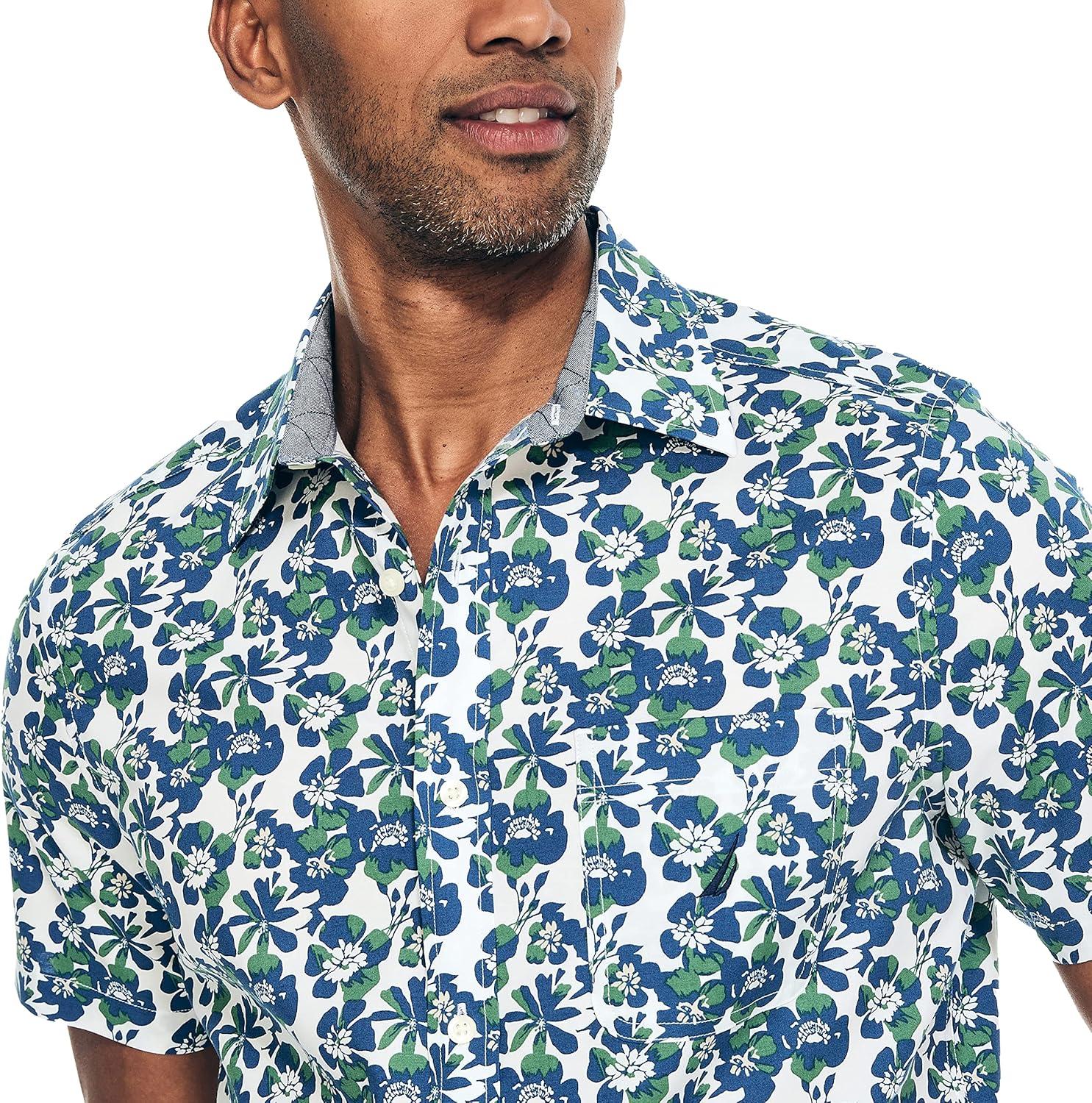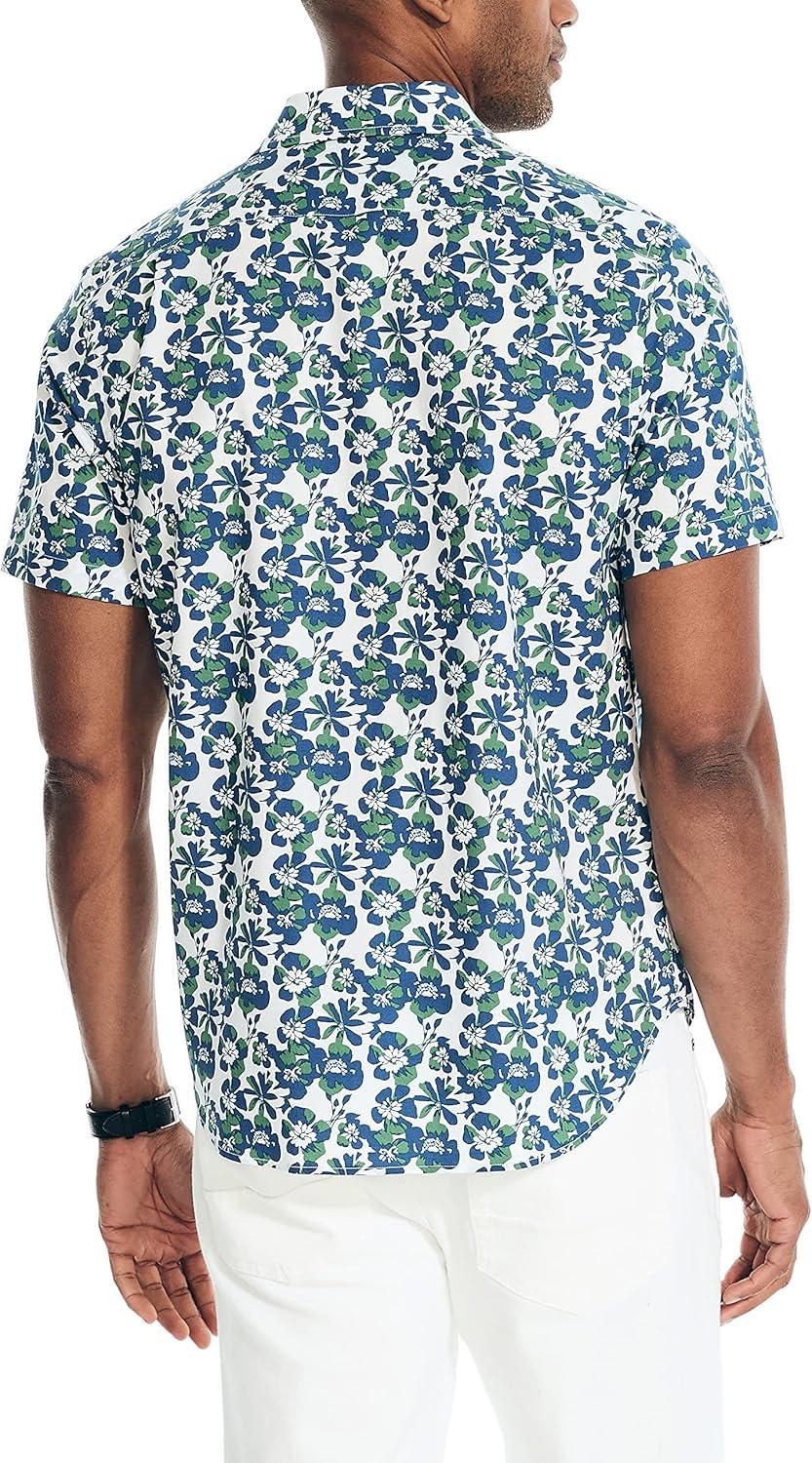 Nautica Mens Nautica Sustainably Crafted Printed Short-Sleeve Shirt(Coastal Pine)
