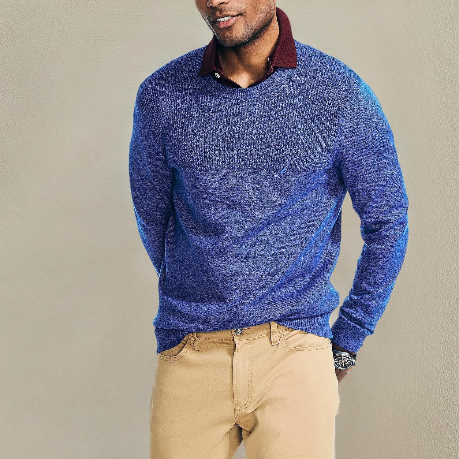 Nautica Mens Nautica Sustainably Crafted Textured Crewneck Sweater(Navy Seas)