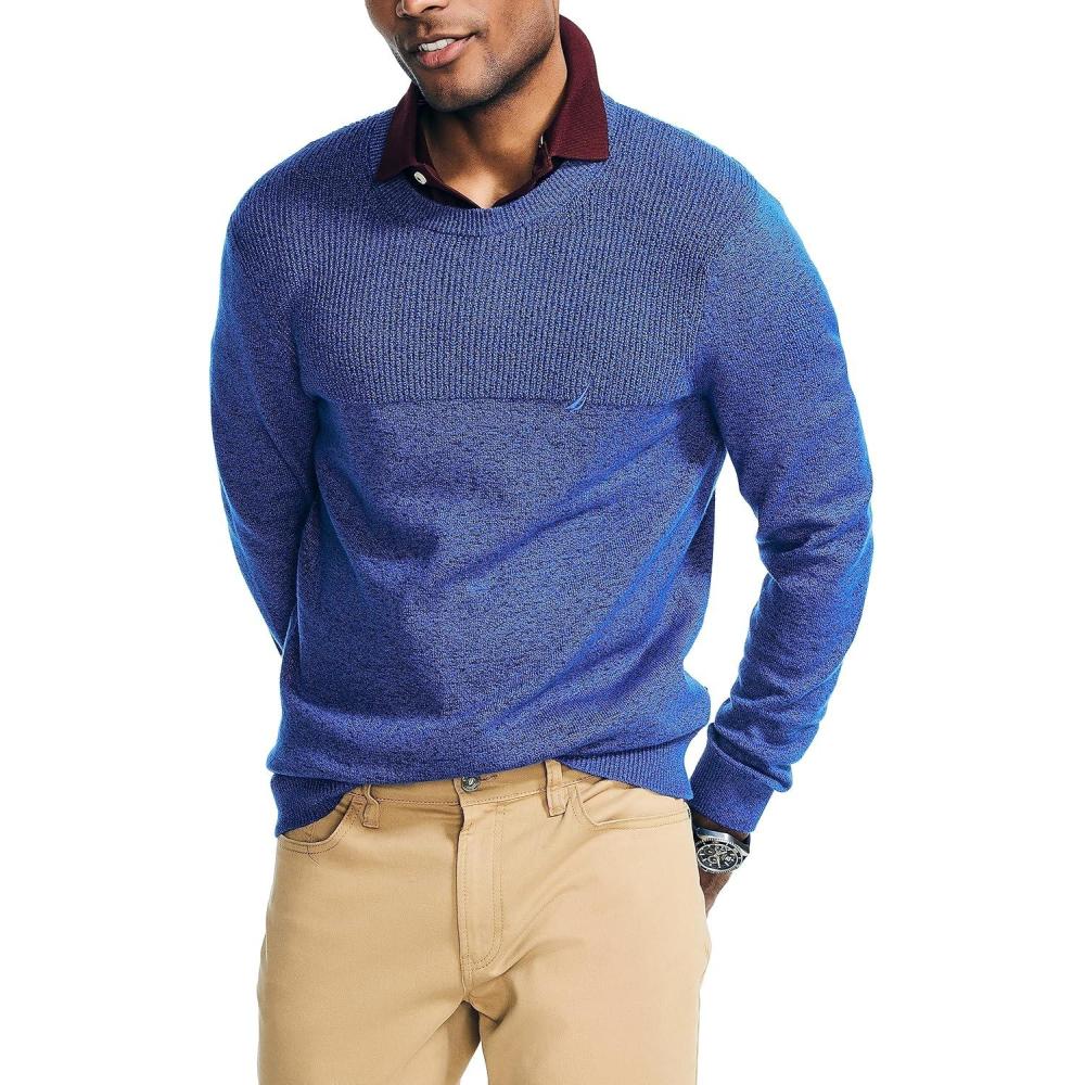 Nautica Mens Nautica Sustainably Crafted Textured Crewneck Sweater(Bright Cobalt)