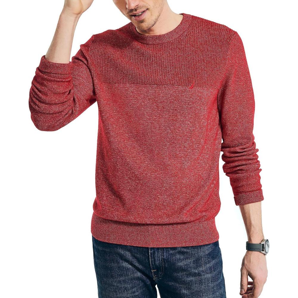 Nautica Mens Nautica Sustainably Crafted Textured Crewneck Sweater(Tango Red)