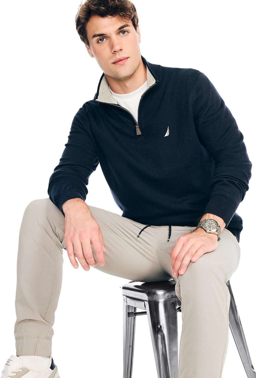 Nautica Mens Navtech Quarter-Zip Sweater(French Navy)