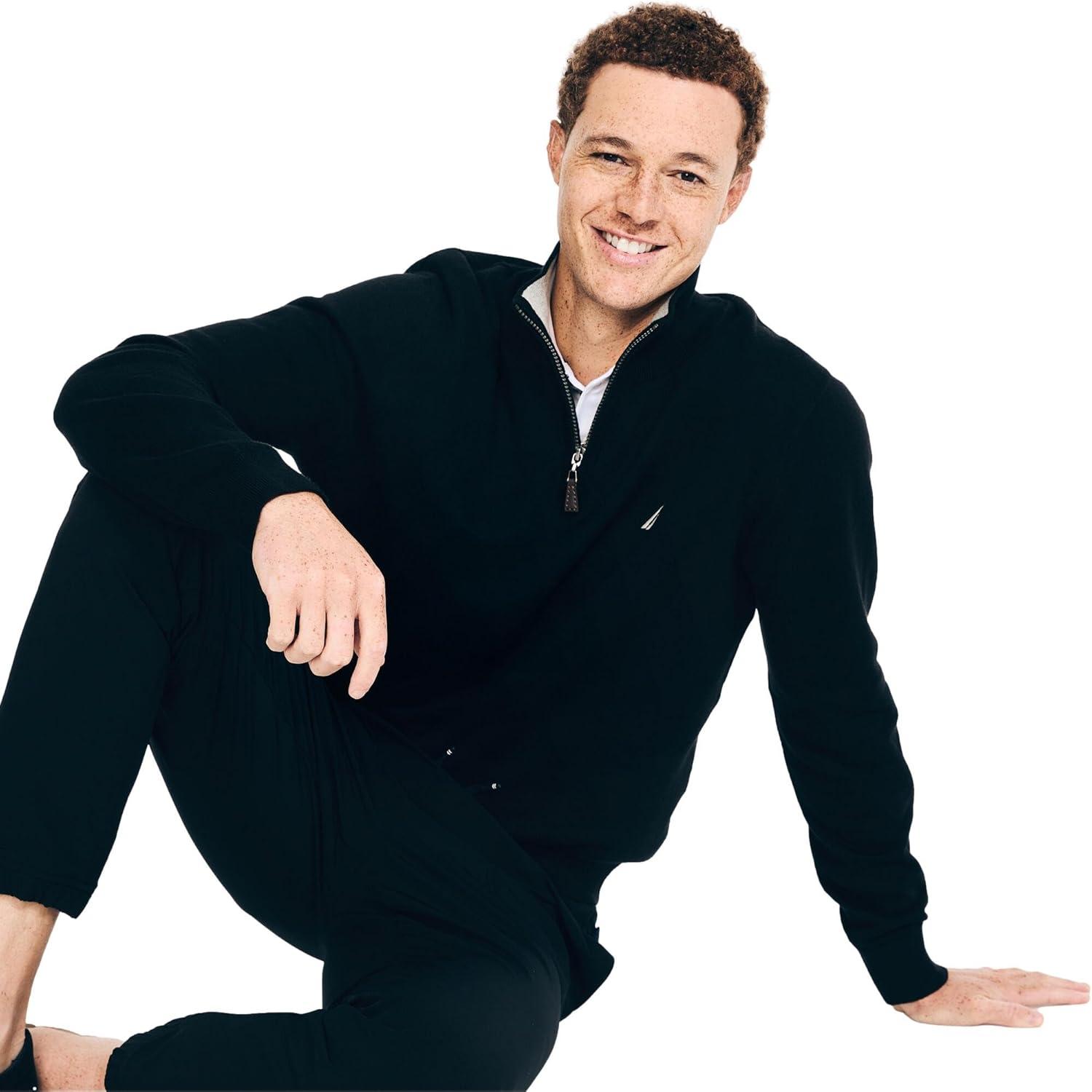Nautica Mens Navtech Quarter-Zip Sweater((Navtech Collection Fall/Winter 2024) True Black)