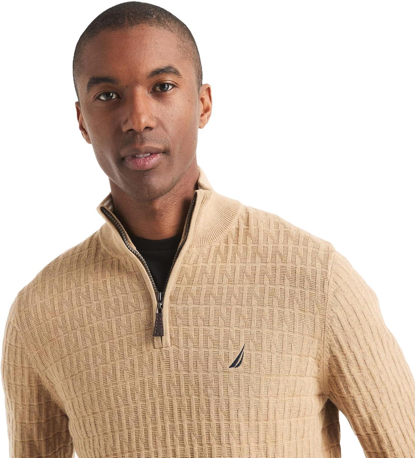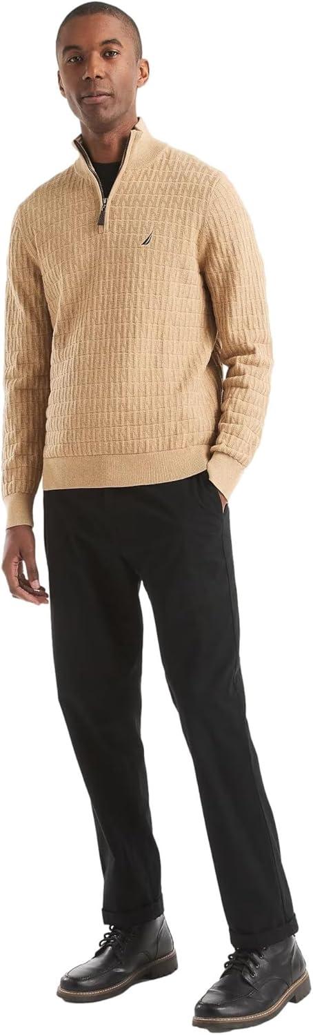 Nautica Men’s Navtech Quarter-Zip Sweater(Textured Camel Heather)