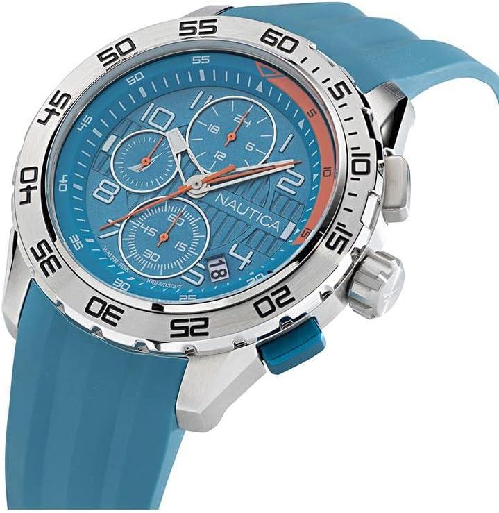 Nautica Men’s NST Chronograph 47mm Watch(Light Blue/Light Blue/Silver)