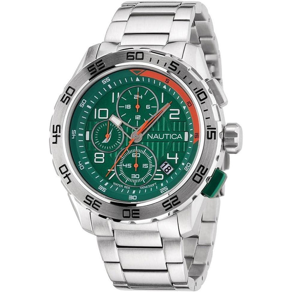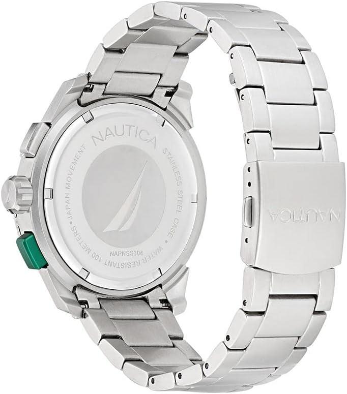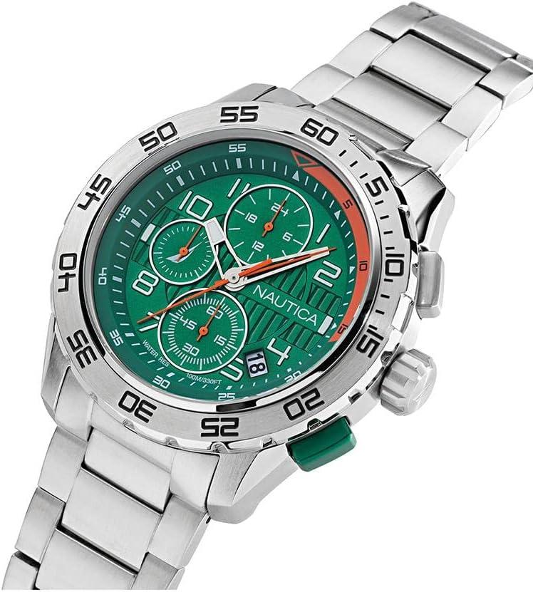 Nautica Men’s NST Chronograph 47mm Watch(Silver/Green/Silver)