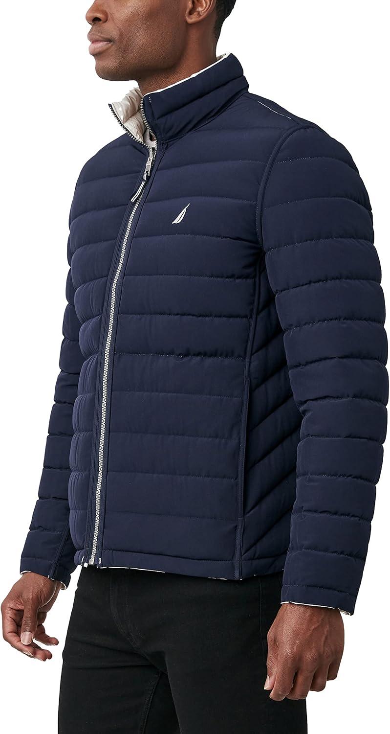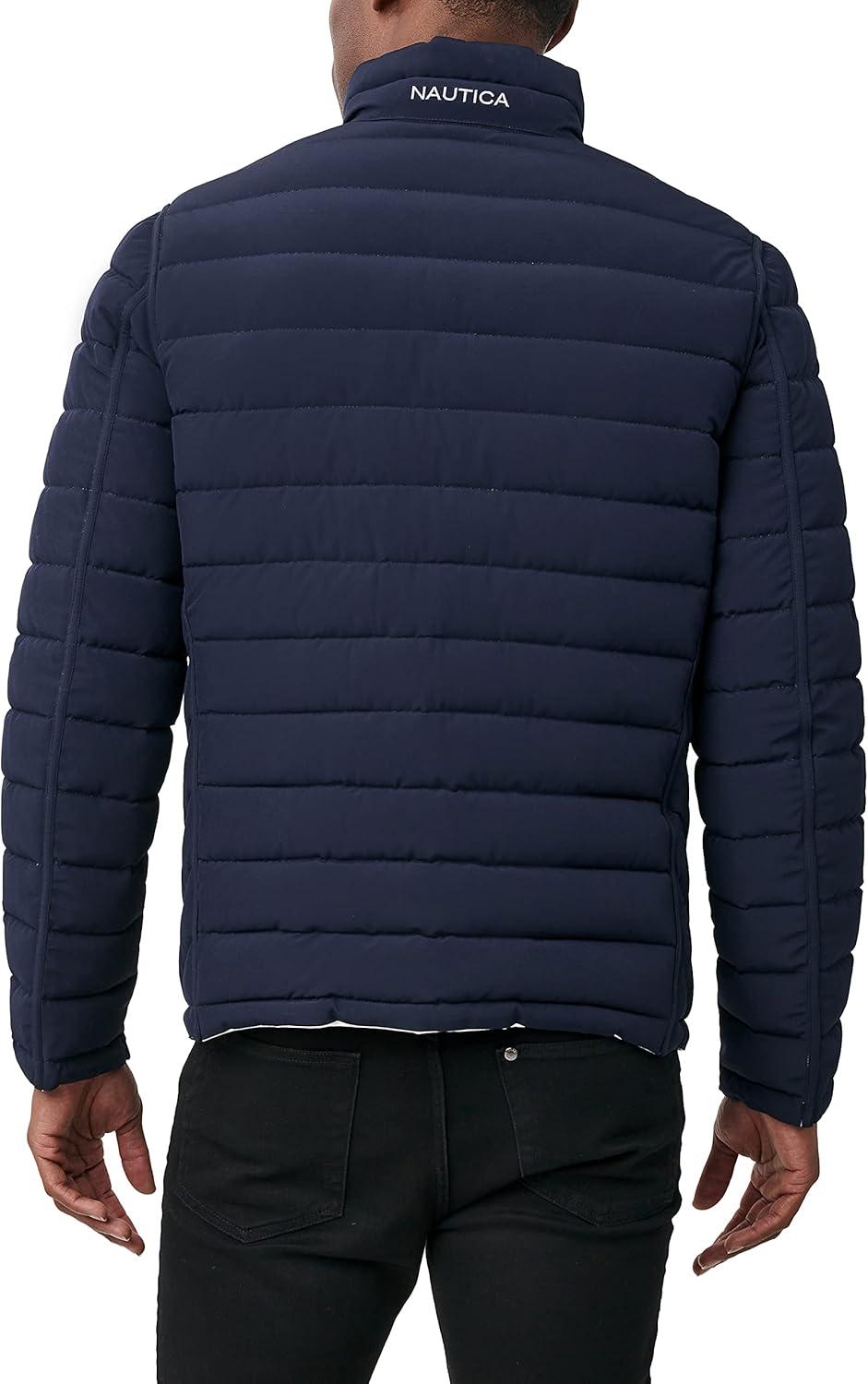 Nautica Men’s Reversible Quilted Puffer Jacket –Midweight Mechanical Stretch Winter Coat(Ink)