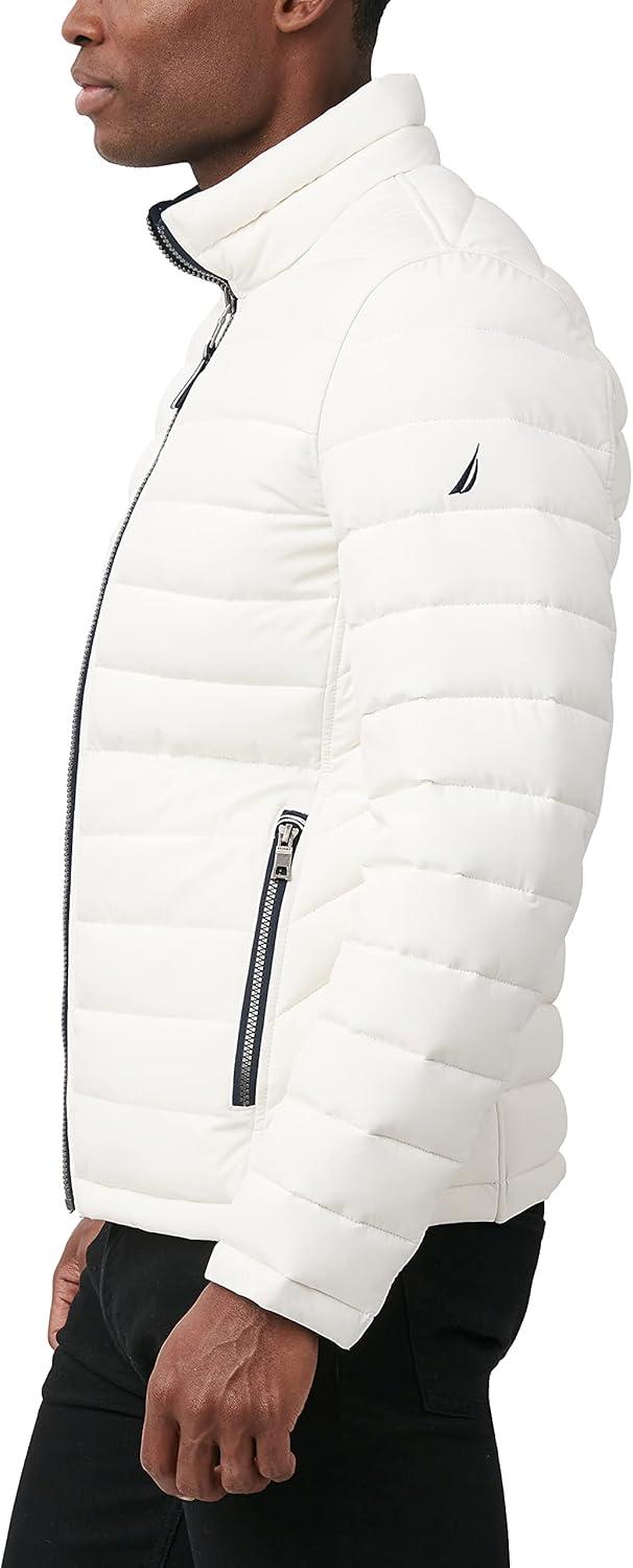 Nautica Men’s Reversible Quilted Puffer Jacket –Midweight Mechanical Stretch Winter Coat(Vintage Sail Cream)