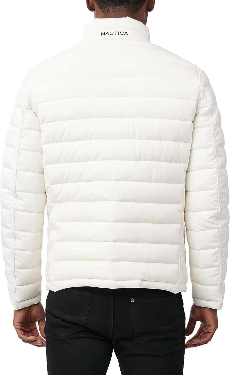 Nautica Men's Reversible Quilted Puffer Jacket –Midweight Mechanical Stretch Winter Coat(Vintage Sail Cream)