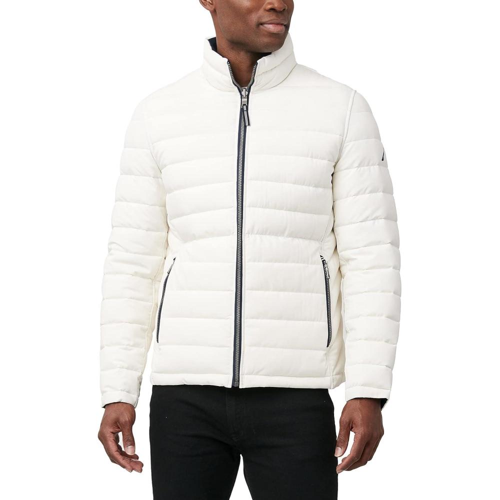 imageNautica Mens Reversible Quilted Puffer Jacket Midweight Mechanical Stretch Winter CoatVintage Sail Cream
