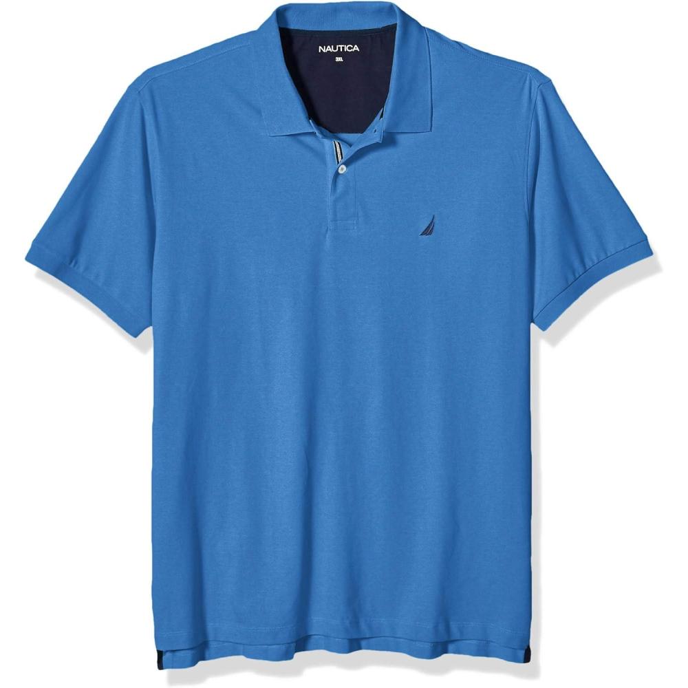 Nautica mens Short Sleeve Stretch Solid Deck Polo Shirt(Delft)