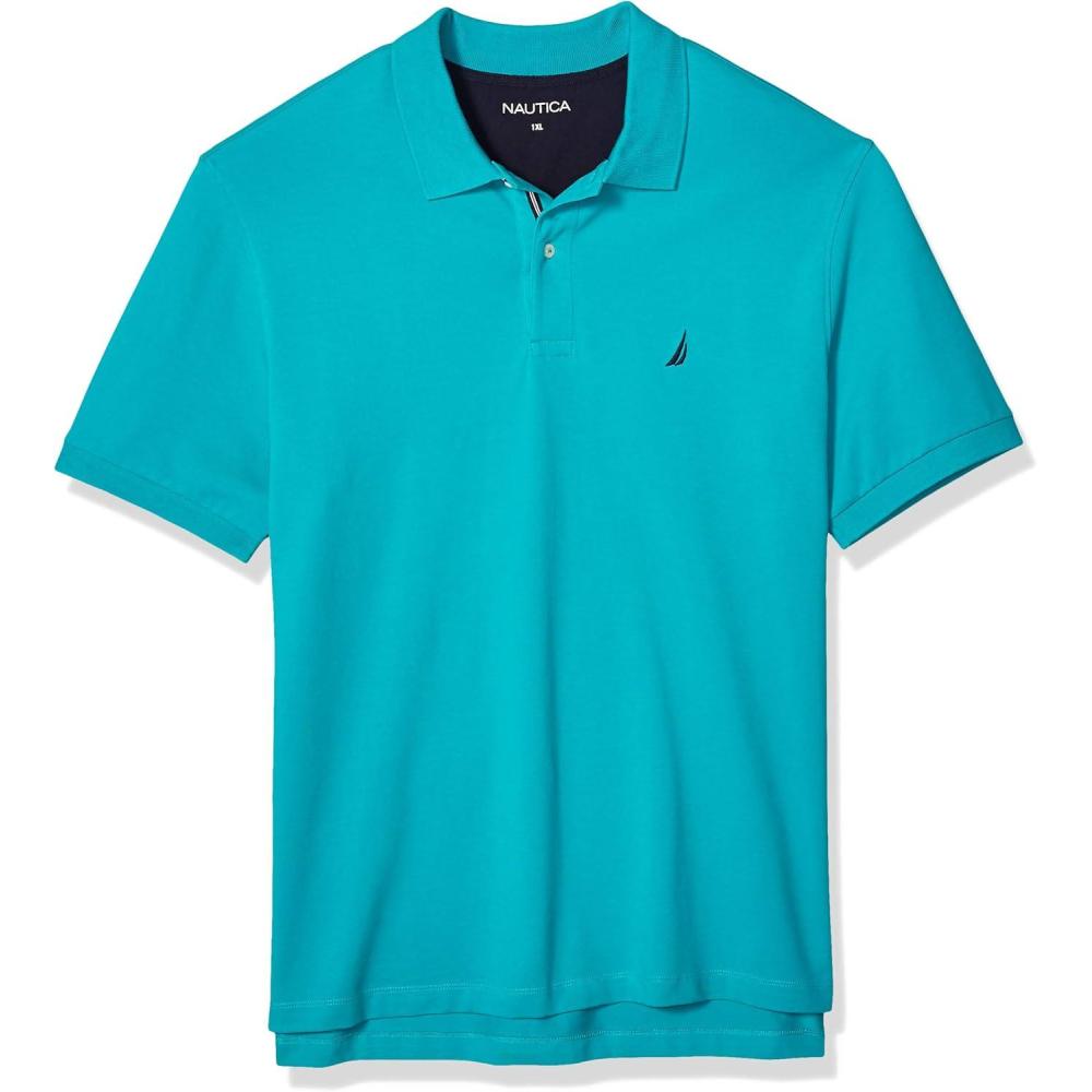 Nautica mens Short Sleeve Stretch Solid Deck Polo Shirt(Gulf Coast Teal)