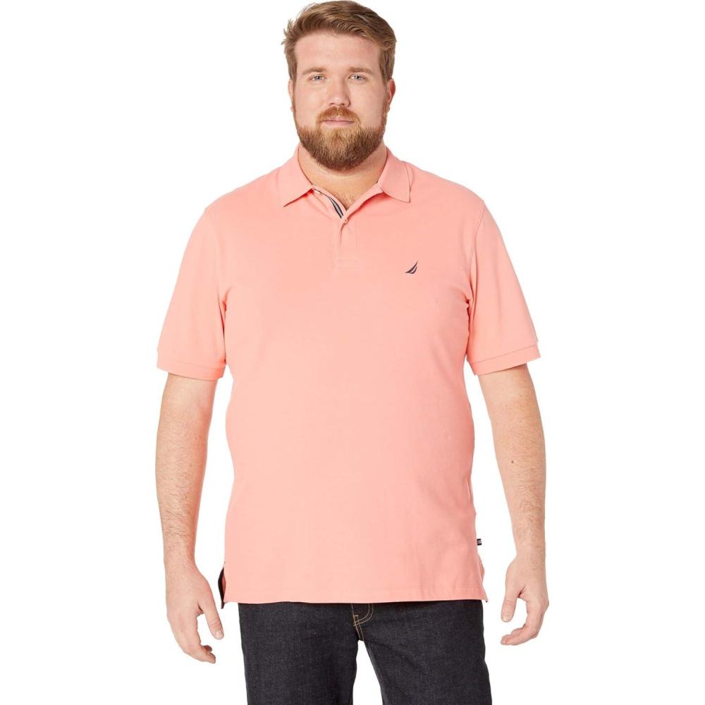 Nautica mens Short Sleeve Stretch Solid Deck Polo Shirt(Pale Coral)