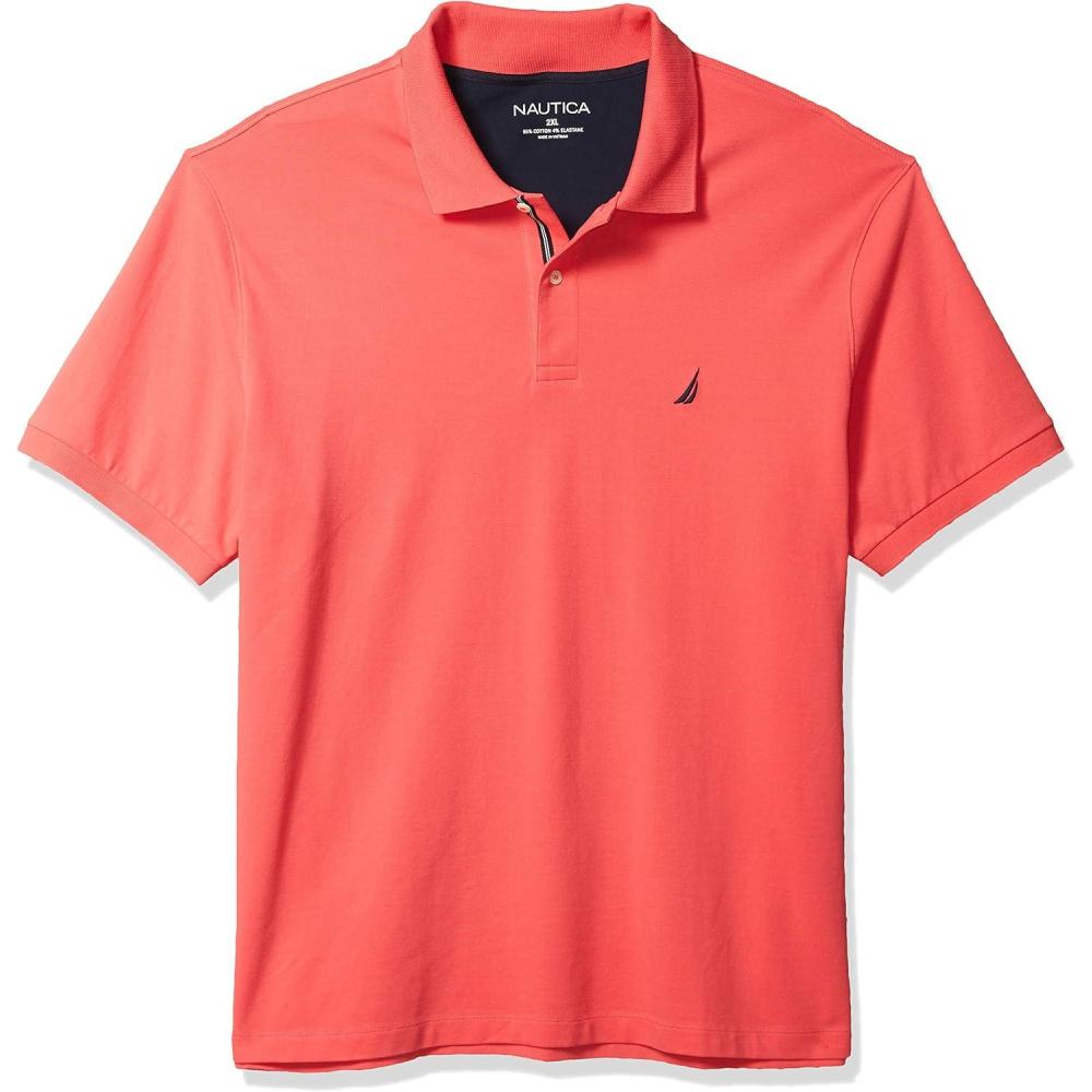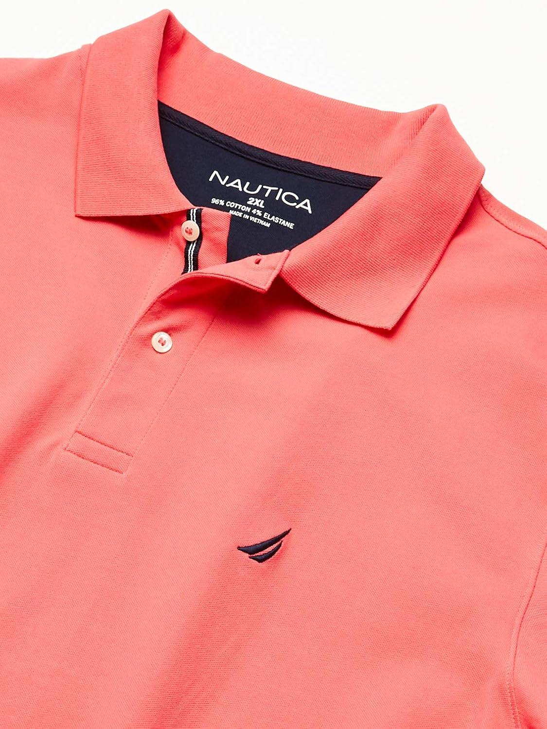 Nautica mens Short Sleeve Stretch Solid Deck Polo Shirt(Paradise Pink)