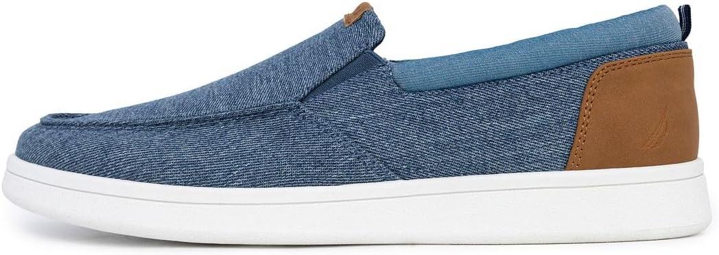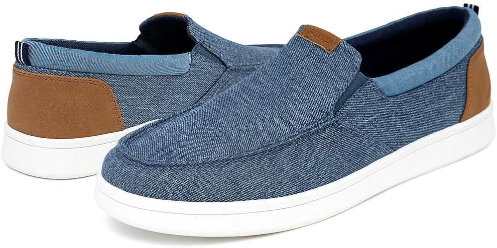 Nautica Men’s Slip-On Loafers Casual Moc Toe Sneakers Boat Shoes Slipper for Men – Lightweight & Comfortable – Derwin(Blue Denim-patro)