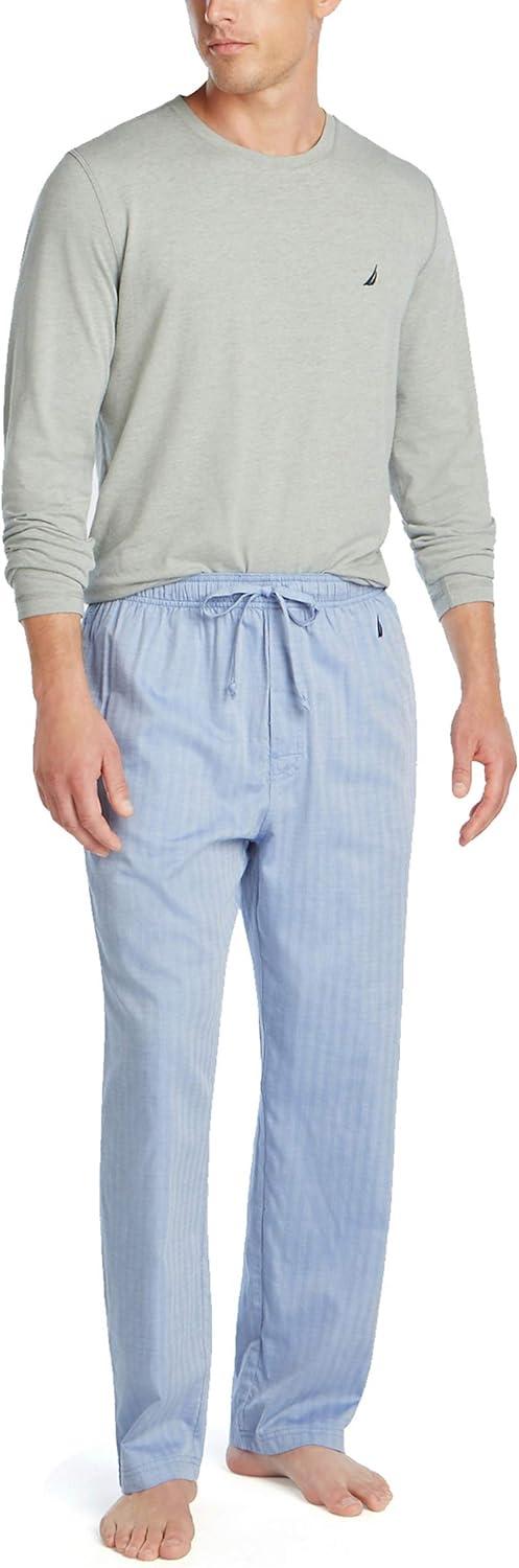 Nautica mens Soft Woven 100% Cotton Elastic Waistband Sleep Pajama Pant(Blue Bone)