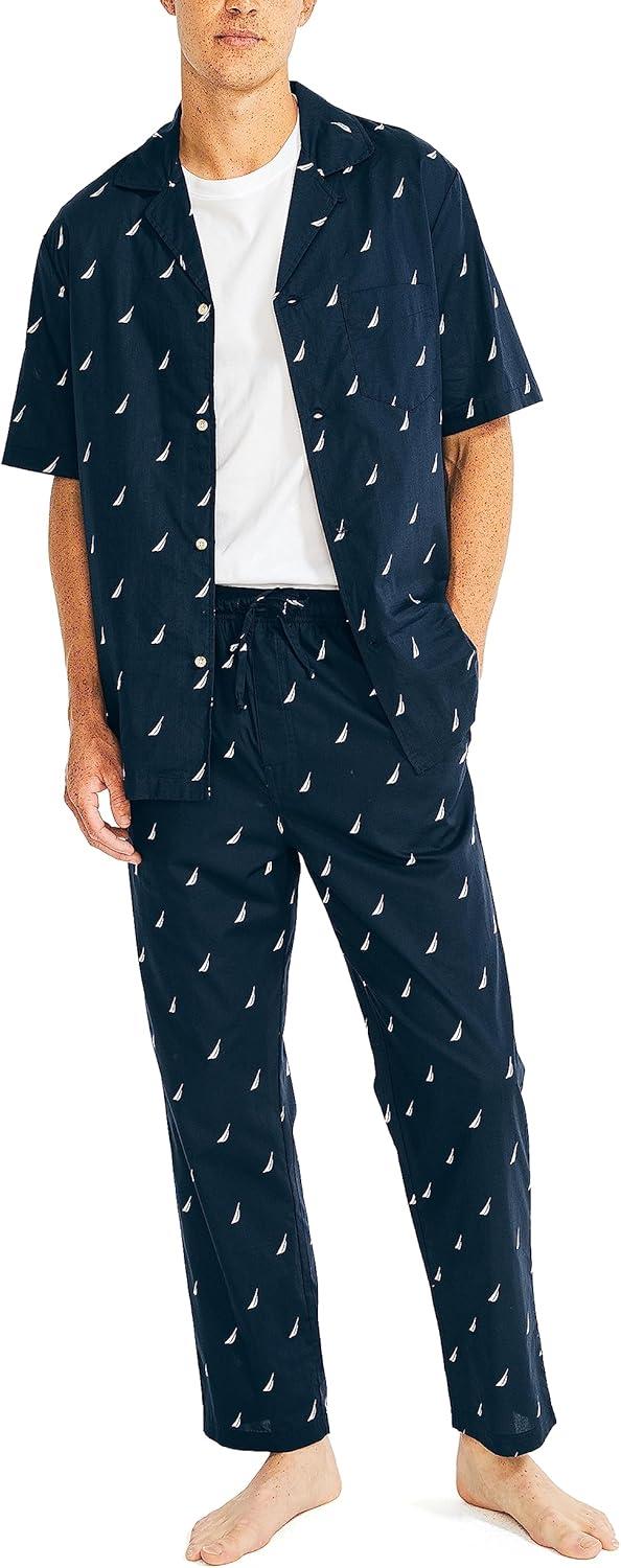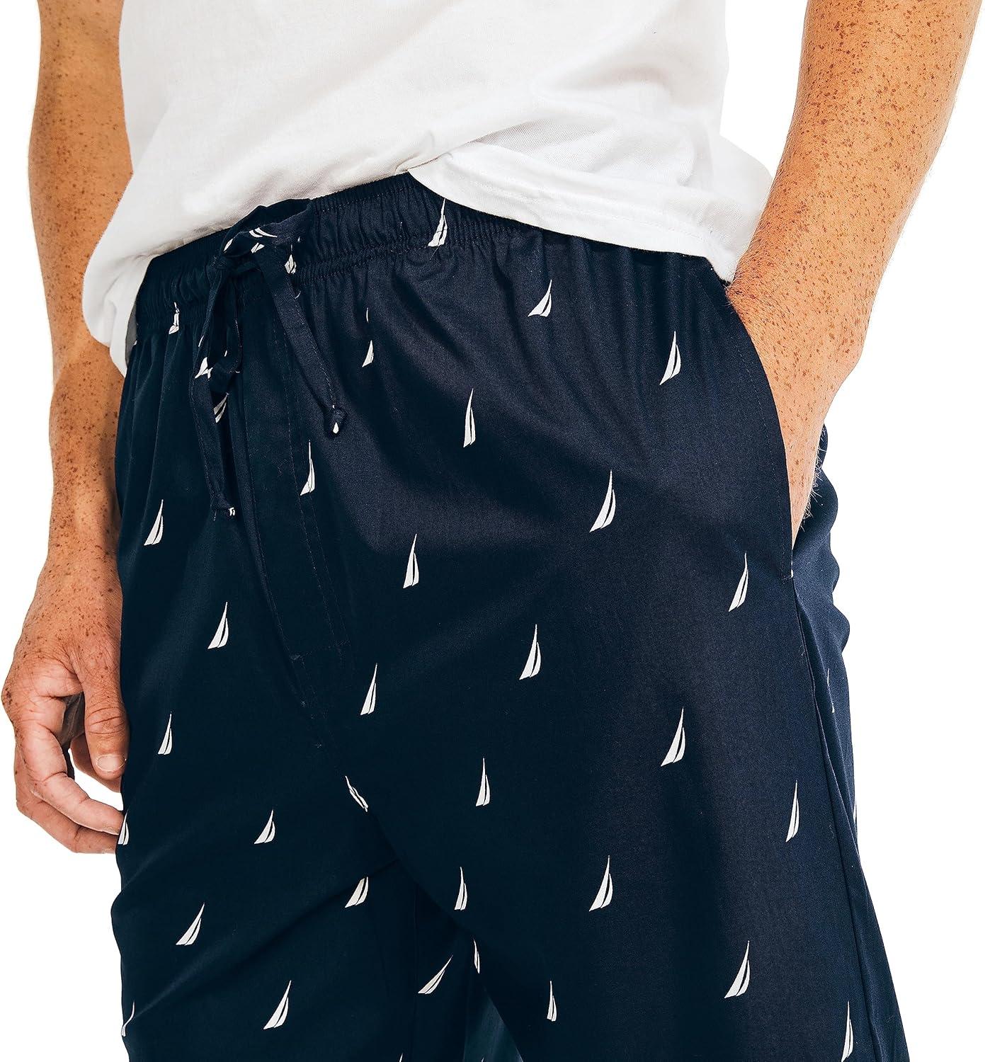 Nautica mens Soft Woven 100% Cotton Elastic Waistband Sleep Pajama Pant(Maritime Navy)