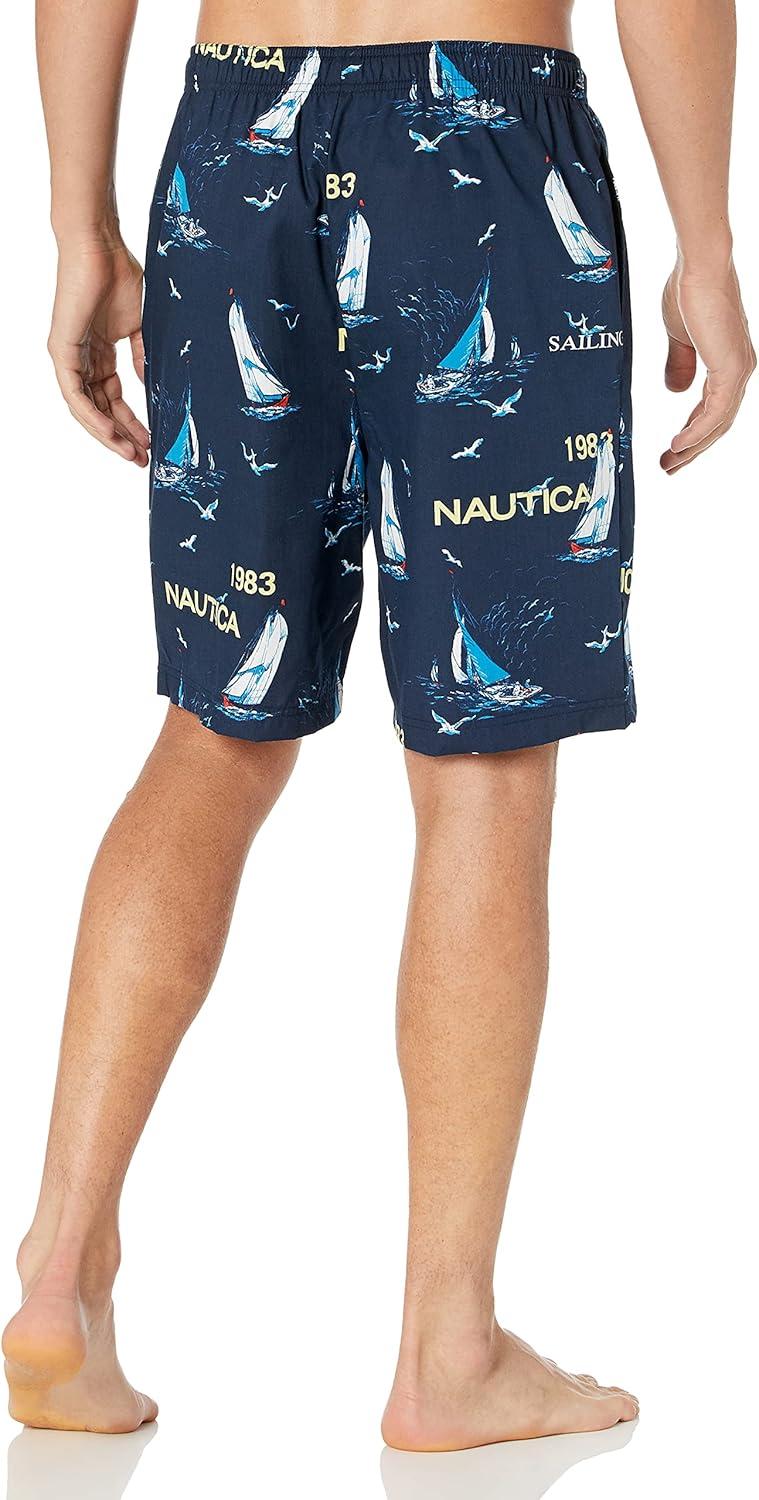 Nautica Men’s Soft Woven 100% Cotton Elastic Waistband Sleep Pajama Short(Blue Depths)