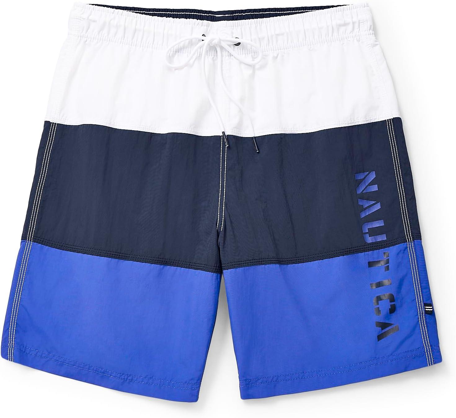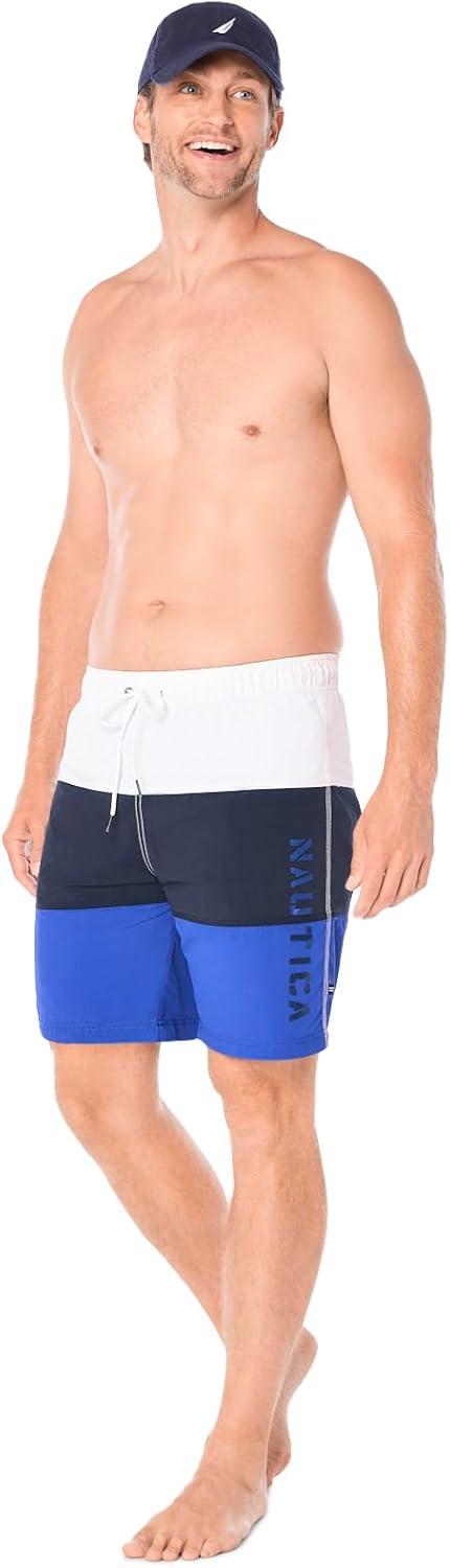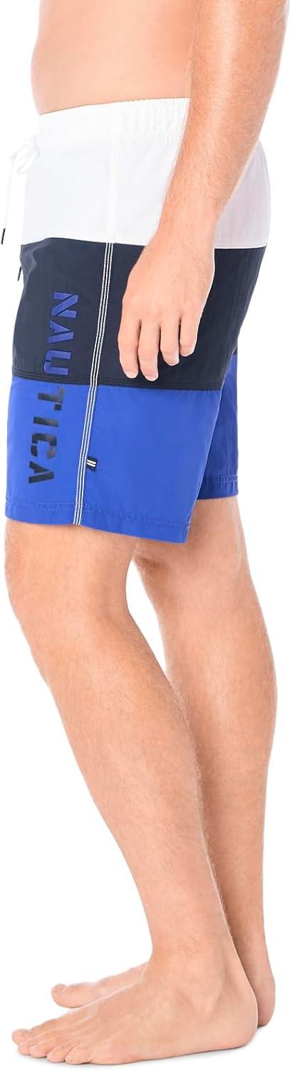 Nautica Men's Standard Quick Dry Classic Logo Tri-Block Series Swim Trunk(Bright Cobalt)