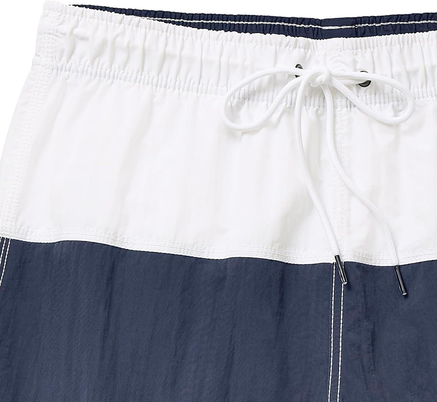 Nautica Men’s Standard Quick Dry Classic Logo Tri-Block Series Swim Trunk(Calypso Blue)