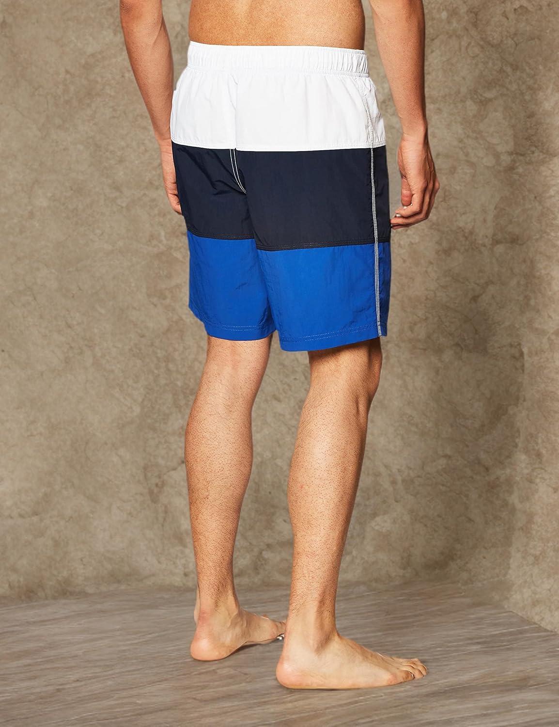 Nautica Men’s Standard Quick Dry Classic Logo Tri-Block Series Swim Trunk(Bright Cobalt)